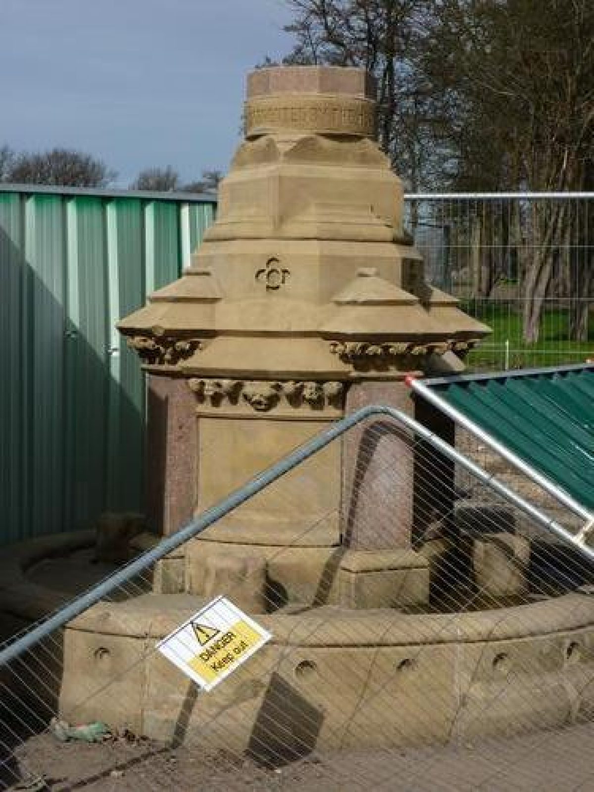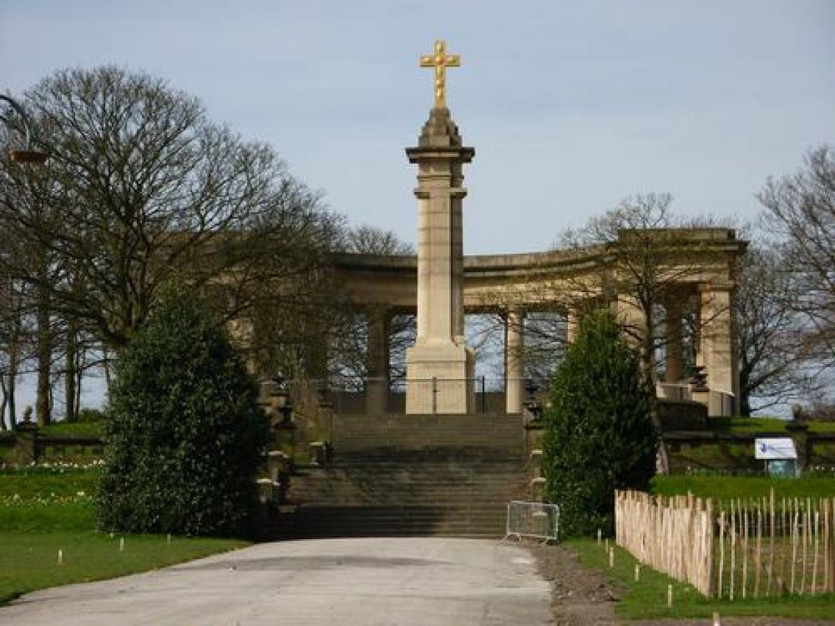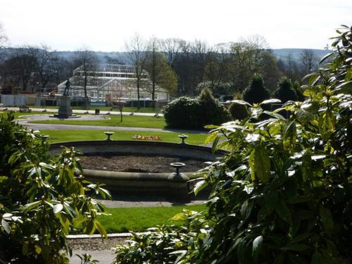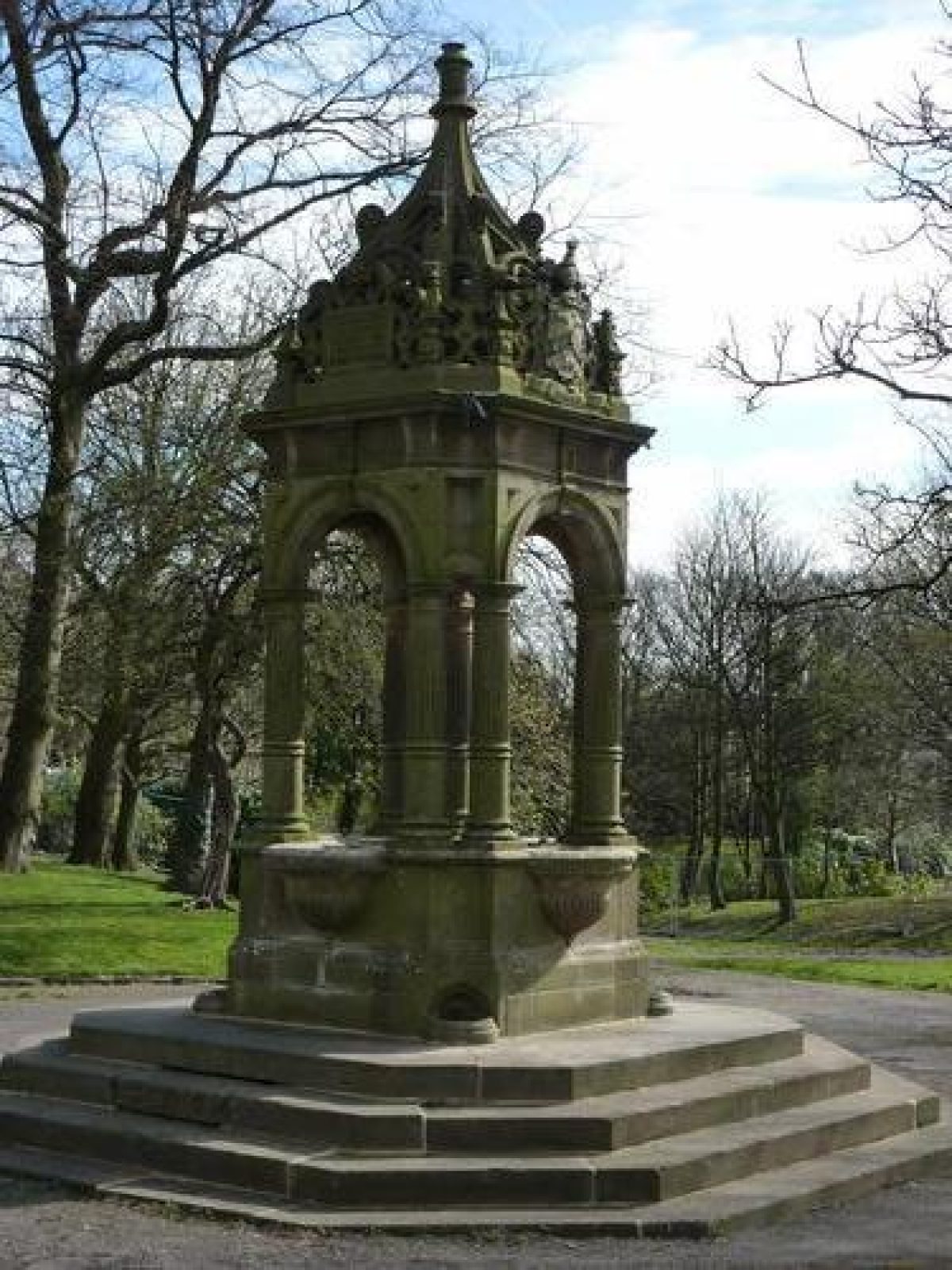 In the south section of the park, the majority of the historic features are retained in the area north of the central axis. A stone fountain basin surrounded by banked bedding out displays lies c 100m north-west of the lodge. A Boer War memorial statue, unveiled in 1905, stands c 60m north-west of the lodge. The timber bandstand, in Japanese style, is set on a stone apron c 210m west of the lodge and the remains of an arbour and viewing platform stand c 80m north-west of the bandstand. The Temperance Drinking Fountain, presented by the Huddersfield Temperance Society in 1885, is c 40m to the south-west of the bandstand. The largest fishpond, located between the bandstand and the arbour, is now (2000) filled in.