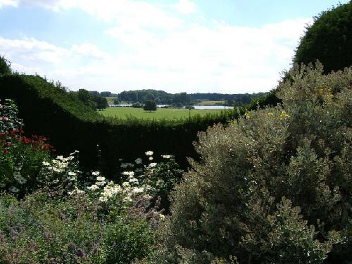 To the north-east of the Castle are gardens entered through cast-iron gates flanked by stone gate piers set in a low wall abutting the south-west end of the stables and north-east side of the forecourt. A gravel path leads south-east past a lawn, on the north-east side of which is a rectangular parterre garden with cross paths, low box hedges, roses, and standard hollies. To the south-east of the parterre is a large lawn bounded by yew hedges while to the north-east lies a rectangular walled Potager, designed by Lady Ancaster with John Fowler and input from Peter Coates between c 1960 and 1970 (Pardo 1991). To the south of the Potager a new area of garden has been established (late C20), partly incorporating some of the adjoining pasture within the garden. A lawn within yew hedges forms the north-west section of this new area and an avenue running to the south-west crosses the section to the south.