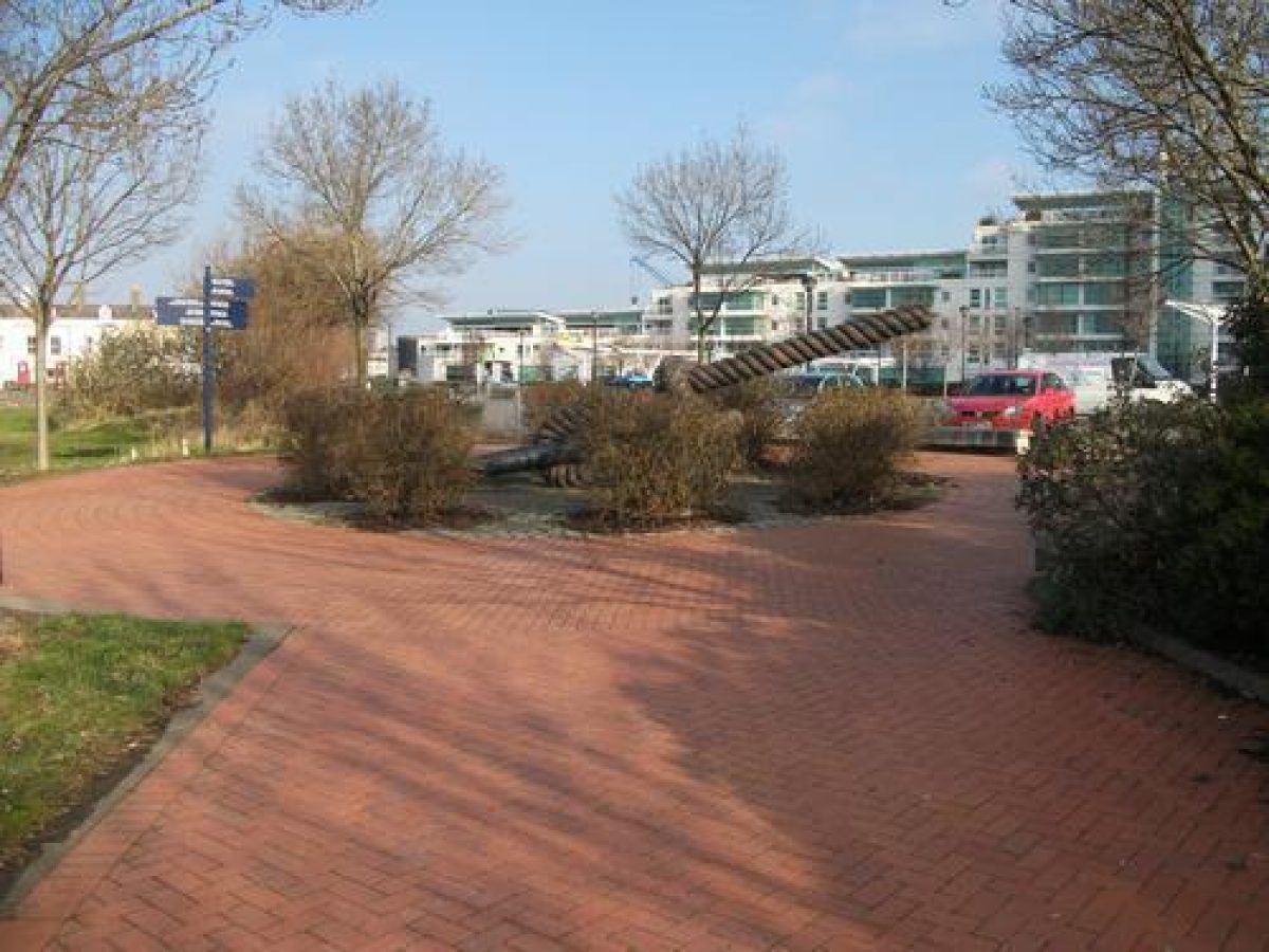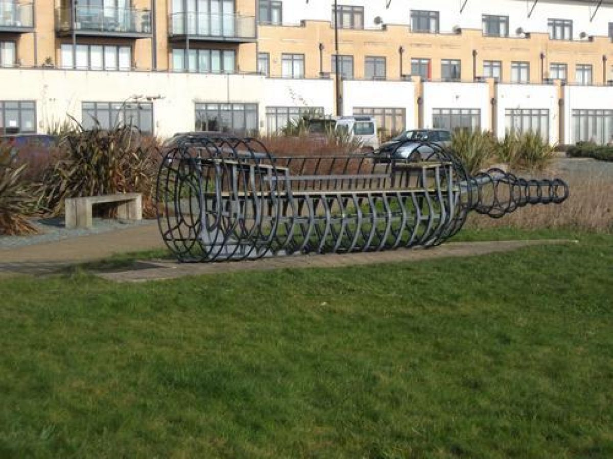 The sandstone sculpture 'Cader Idris' by William Pye (1999*) is located close to the boardwalk and nearby near the western end of Windsor Esplanade a seat called 'Ship in a Bottle' by Melissa Gibbs (2004) can be found, whilst the bronzes 'Drift of the Curlews' by Sally Ann Matthews (2000) and 'Bowline Knot' by Andrew Rowe (2000) are to be found at the end of Havannah Street adjacent St David's Hotel.