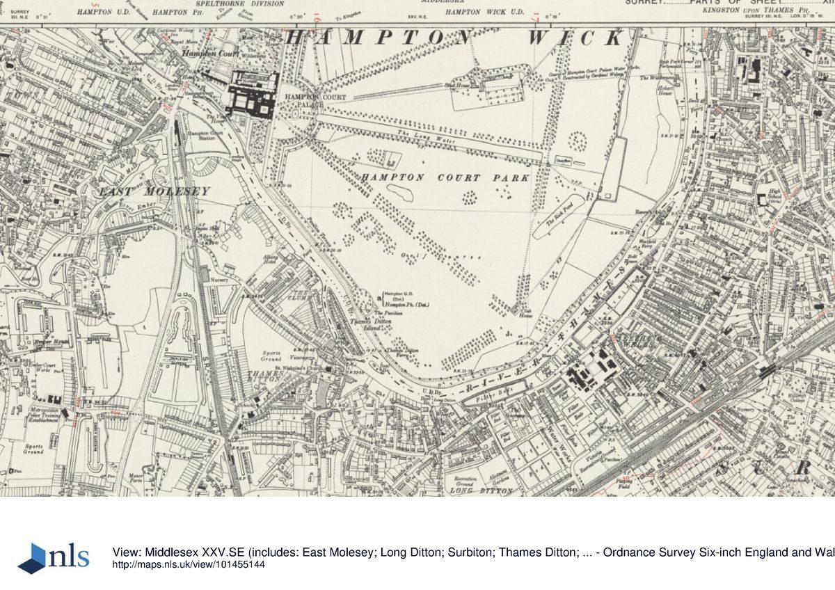 To the east of the Fountain Garden is Hampton Court Park which retains much of the original level ground imparked by the early C16 and originally named House Park. The park is dominated by The Long Water; made for Charles II in 1661-2, it extends for c 1km east of the Fountain Garden and is lined with double avenues of lime trees, a few of which survive from the C17. The park is crossed by other late C17/early C18 avenues, replanted from 1987 onwards. A golf course established in 1895 takes up much of the land to the south of The Long Water.