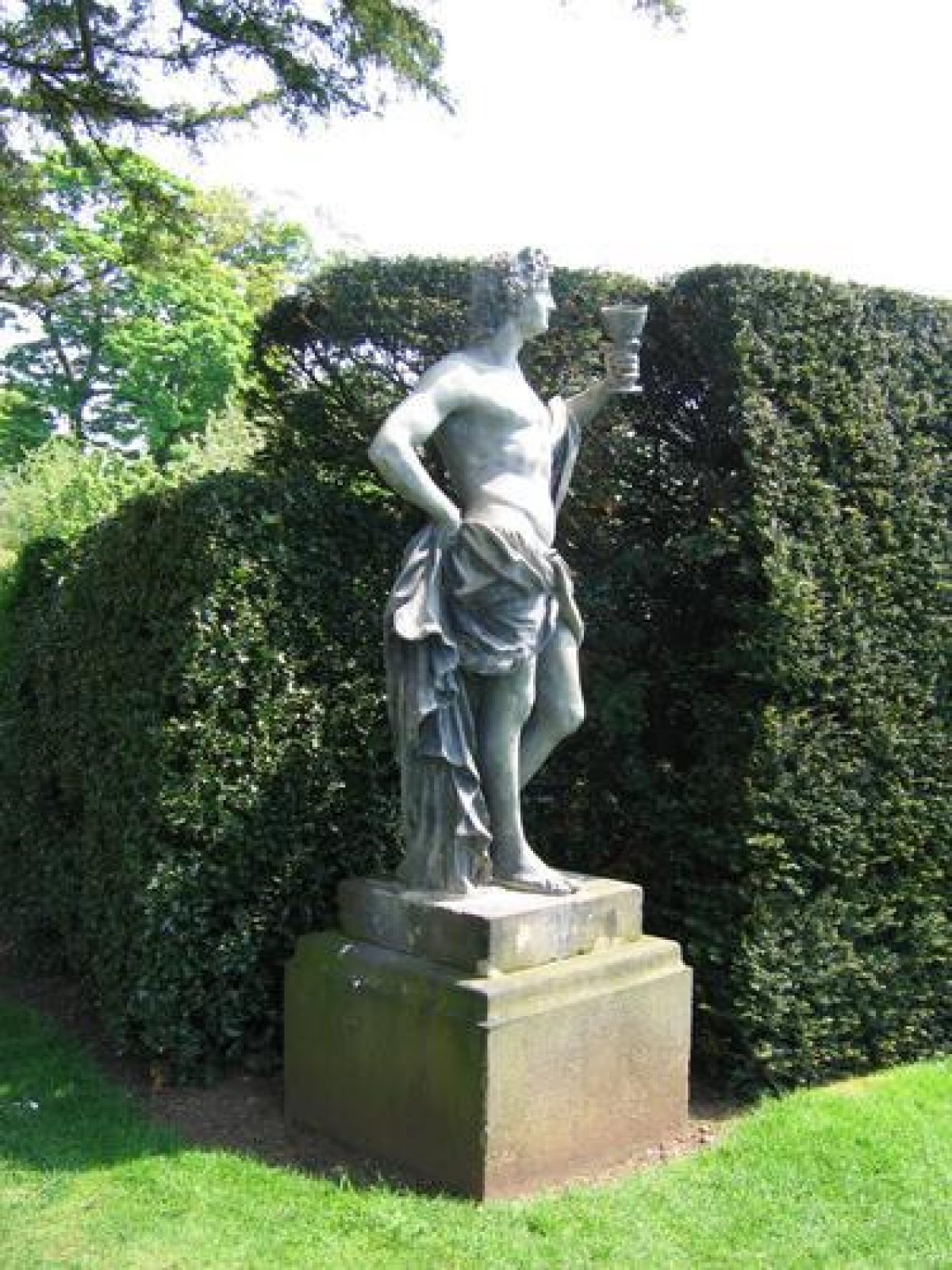 On the east side of the Hall the walled East Court has opposed gateways in the north and south walls which have stone gate piers with bold capitals, probably those described in specifications for garden work dated 1686 (NT report c 1980). The garden is grassed and there is a central basin constructed in 1913 to provide a reservoir of water for firefighting. There is a ha-ha of c 1930 along the east side of the court which has low topiaried yew hedges along the top of it with a central opening affording views to the east and to the avenues in the eastern part of the park. A painting of the east side of the Hall of c 1785 (guidebook) shows a gravel walk aligned with the entrance with a set of stone plinths surmounted by capitals ranged alongside it. Pieces of stonework with carved ox masks in the West Court may be the remains of these features which are possibly the 'pedestalls' which were made in 1686.