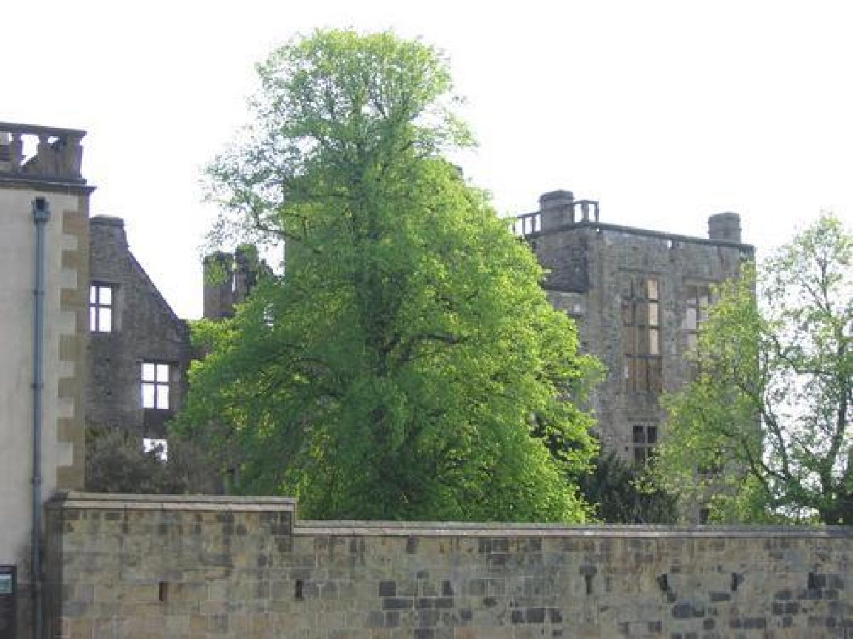 Some 100m south-west of the Hall is Hardwick Old Hall (listed grade I) which stands on the edge of a bluff from which the land falls away precipitously to the west. The north side of the building is set back to the south of a walled courtyard with pavilions at the north-west and north-east corners. The Old Hall has early C16 origins and was substantially remodelled by Bess of Hardwick in the years 1587-90 before the death of her husband, the Earl of Shrewsbury, which gave her the means to begin an entirely new building. The Old Hall was retained for use as ancillary accommodation after the new Hall was completed. It fell into disrepair and was partially demolished in 1740. The decision to retain the north front was possibly prompted by appreciation of its romantic appearance and the ruins were shown in an engraving in the European magazine of 1799. The building is maintained as a controlled ruin by English Heritage (1998).