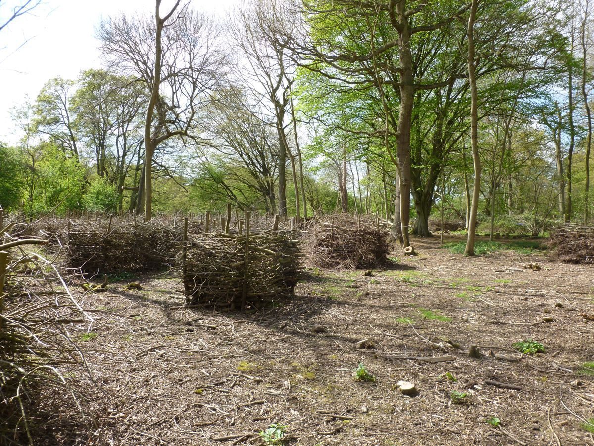 Reasonably flat.The coppices have been maintained over the centuries, each surrounded by a low earth bank. Within four of the coppices are so-called " pattes d'oie " radiating from the centre, added in the Georgian era to aid hunting with a gun. Ancient trees have been pollarded.