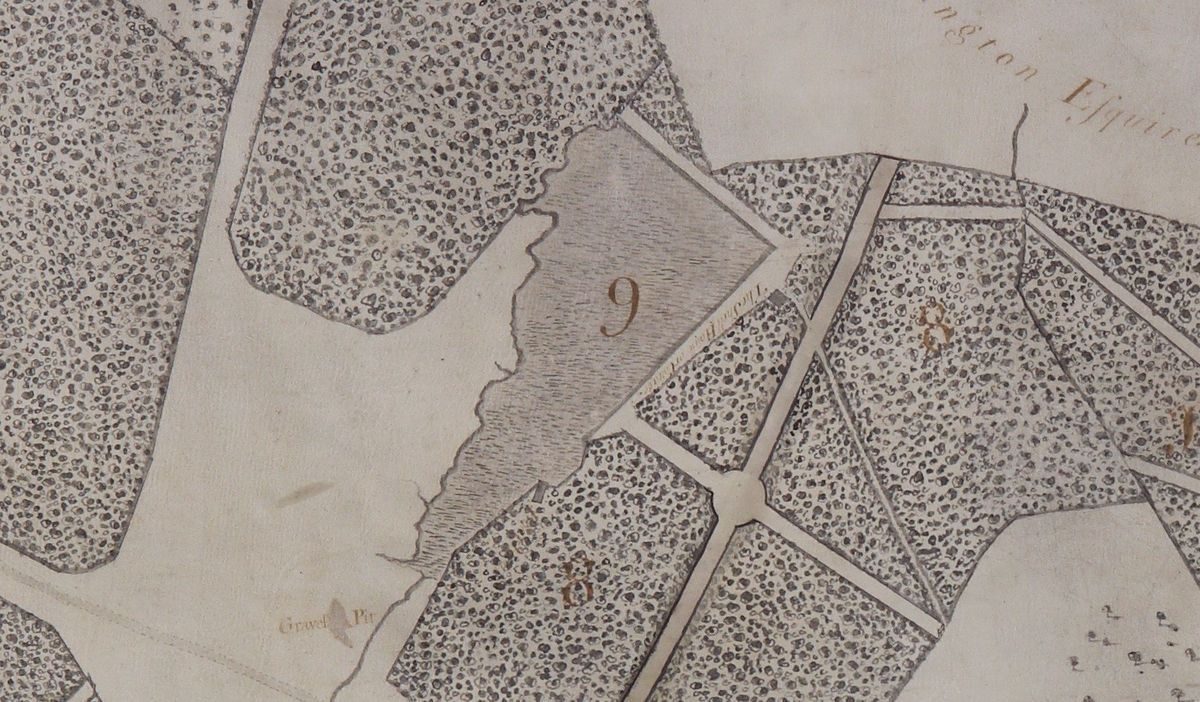 Interestingly, the Brown Plan shows an existing building by the side of the lake but its shape suggests it is only the cottage, without the building forming the Shell Room attached at the lake end. A simple explanation would be that the Brown survey was carried out earlier in 1757 and the Hollingworth Landers survey in later 1757. The Shell House was built in mid-1757, between the two surveys, and the shell decorations then added later, in 1759.