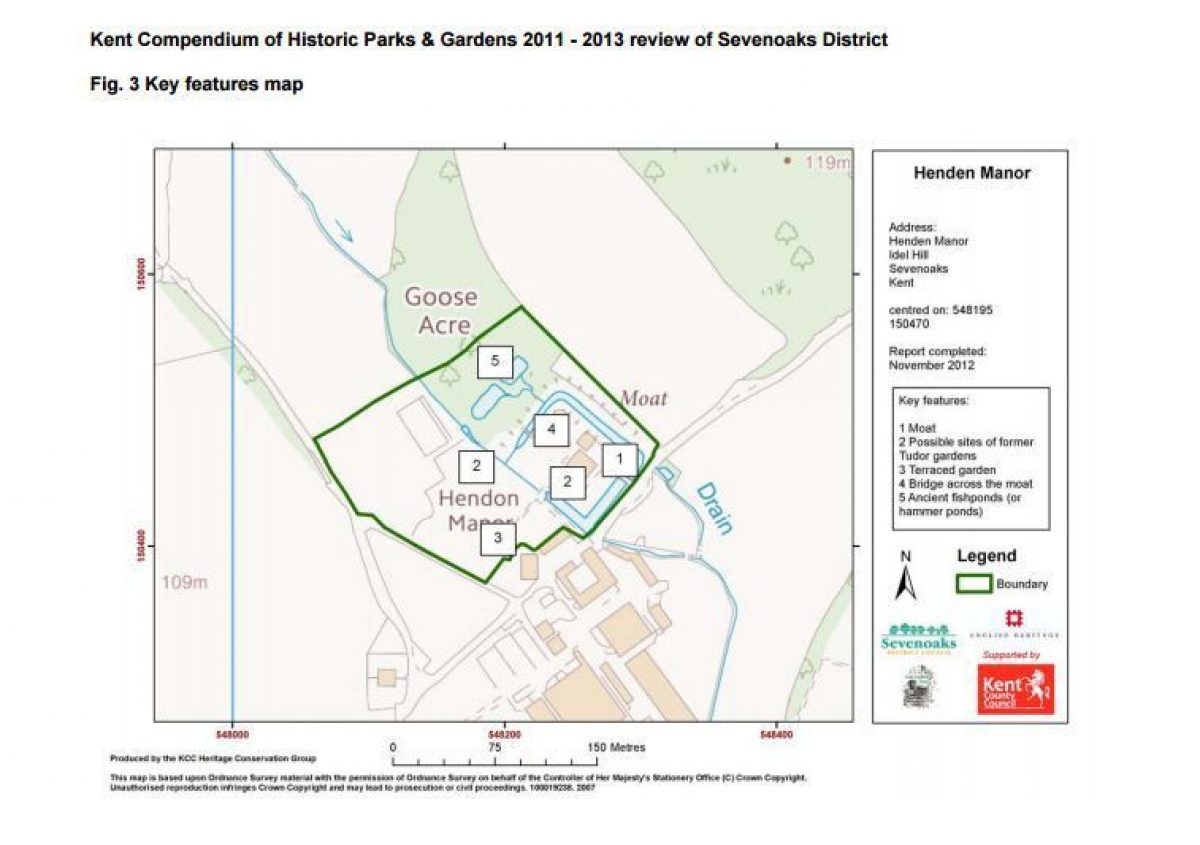 The history of Henden Manor, particularly during the C16, is well-supported by primary evidence including, critically, the existence in 1590 of 10 Tudor gardens, which were extant some 200 years later and are almost certainly those illustrated on an early C19 map.