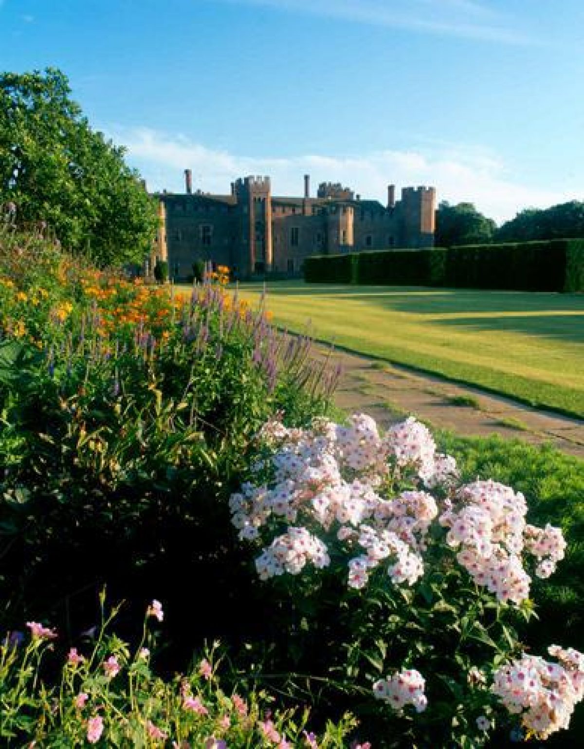 The area of formal gardens immediately around the Castle include the moat to the south and east and the extended walled garden to the north.