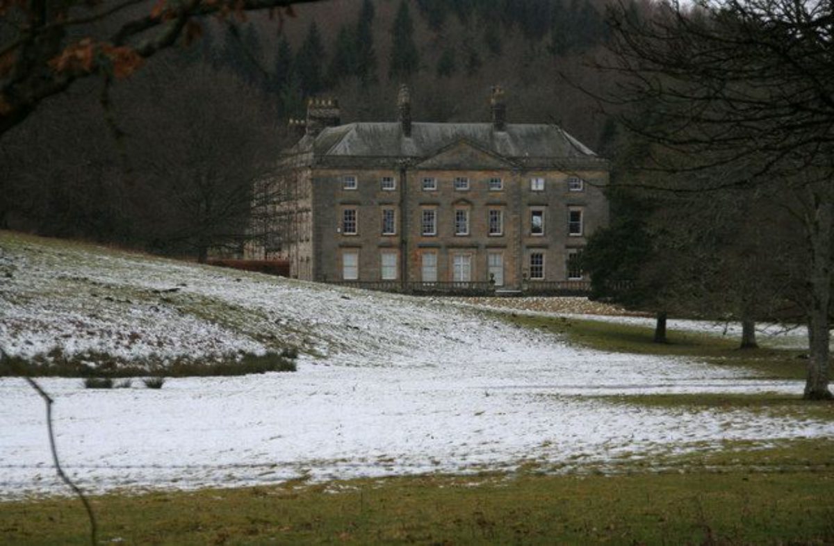 One of the principal views of Hesleyside Hall is from the east when, passing along the public road on the south bank of the river at Spring Plantation, the east front of the Hall appears framed by the east avenue. This east front also forms the view, framed by the avenue and with water in the foreground, as seen from the public road on the north bank of the Tyne when passing along the Bellingham Road, at Cuddies Loup.