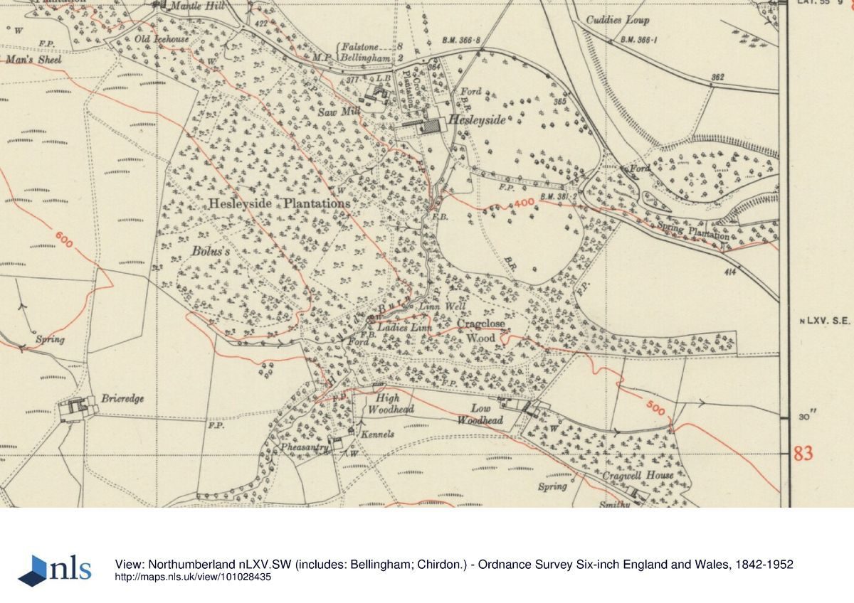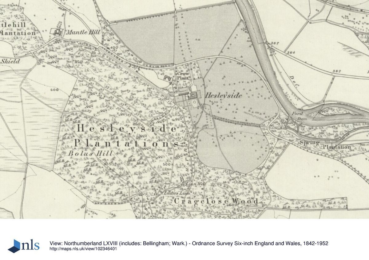 Spring Plantation, to the south-east of the Hall, is planted along a stream which rises between Hesleyside and Dunterley.