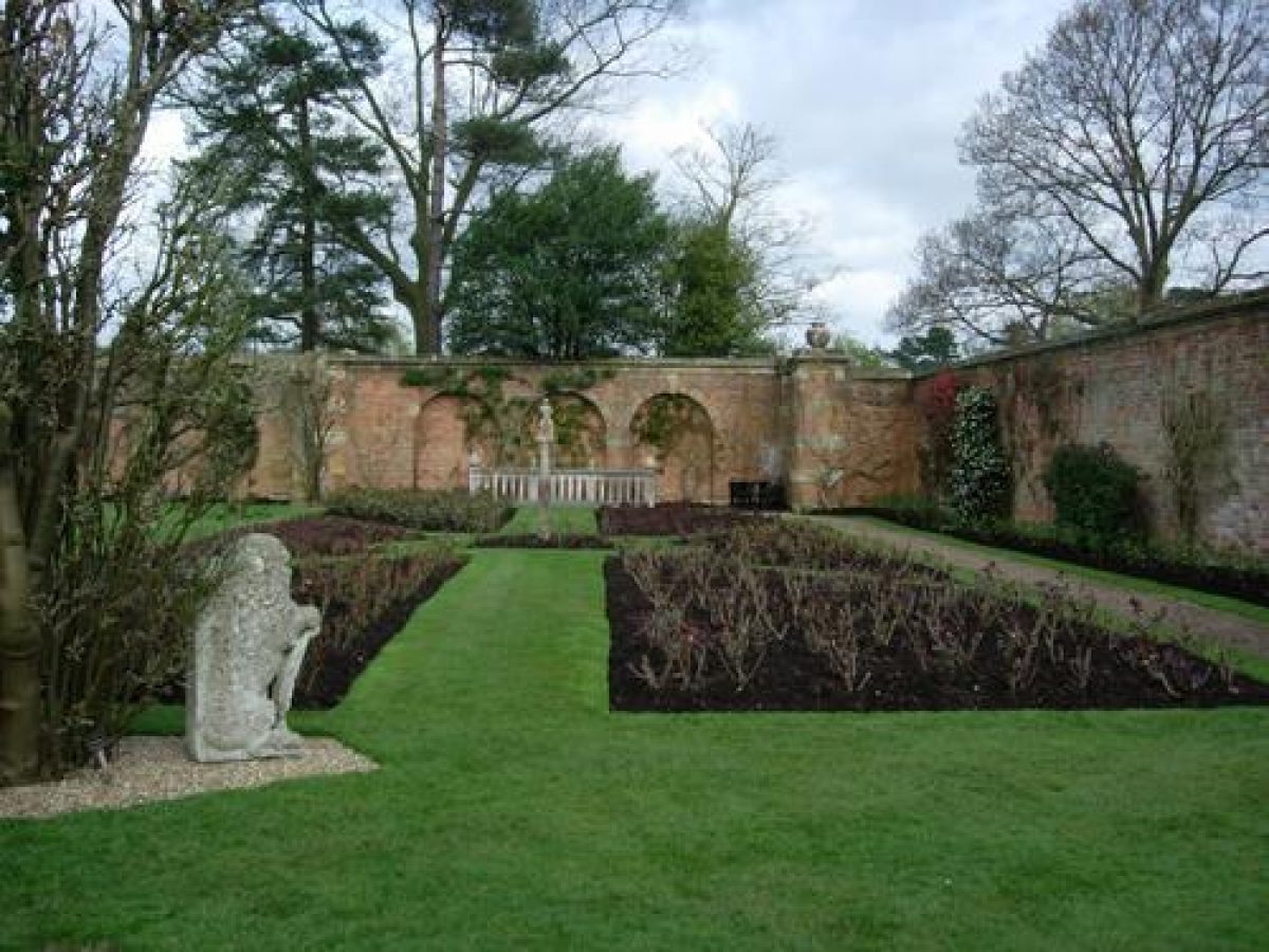 Opening southwards off the Italian Garden is the Rose Garden, enclosed by brick walls and laid out with lawn and segmental rose beds. South of the Rose Garden is the tea pavilion, built in 1973.
