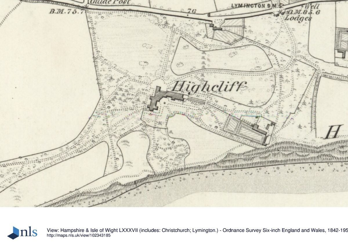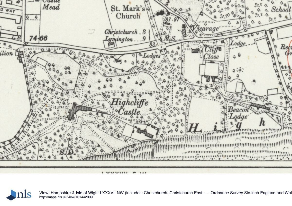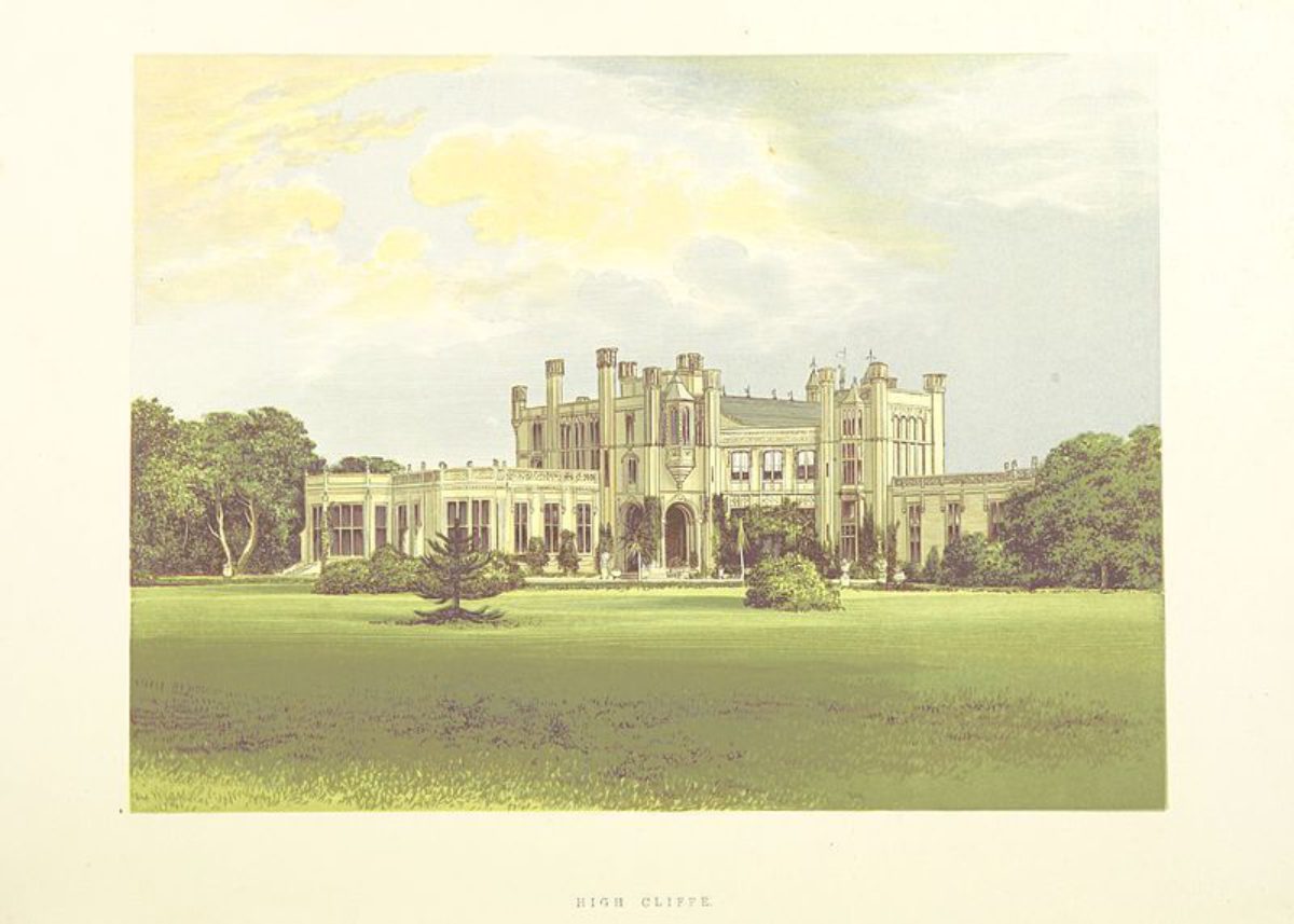 Highcliffe Castle is an early-19th-century house, built to replace another within a park being eroded by the sea. The lawns and shrubbery walks remain but the famous botanic gardens are gone.