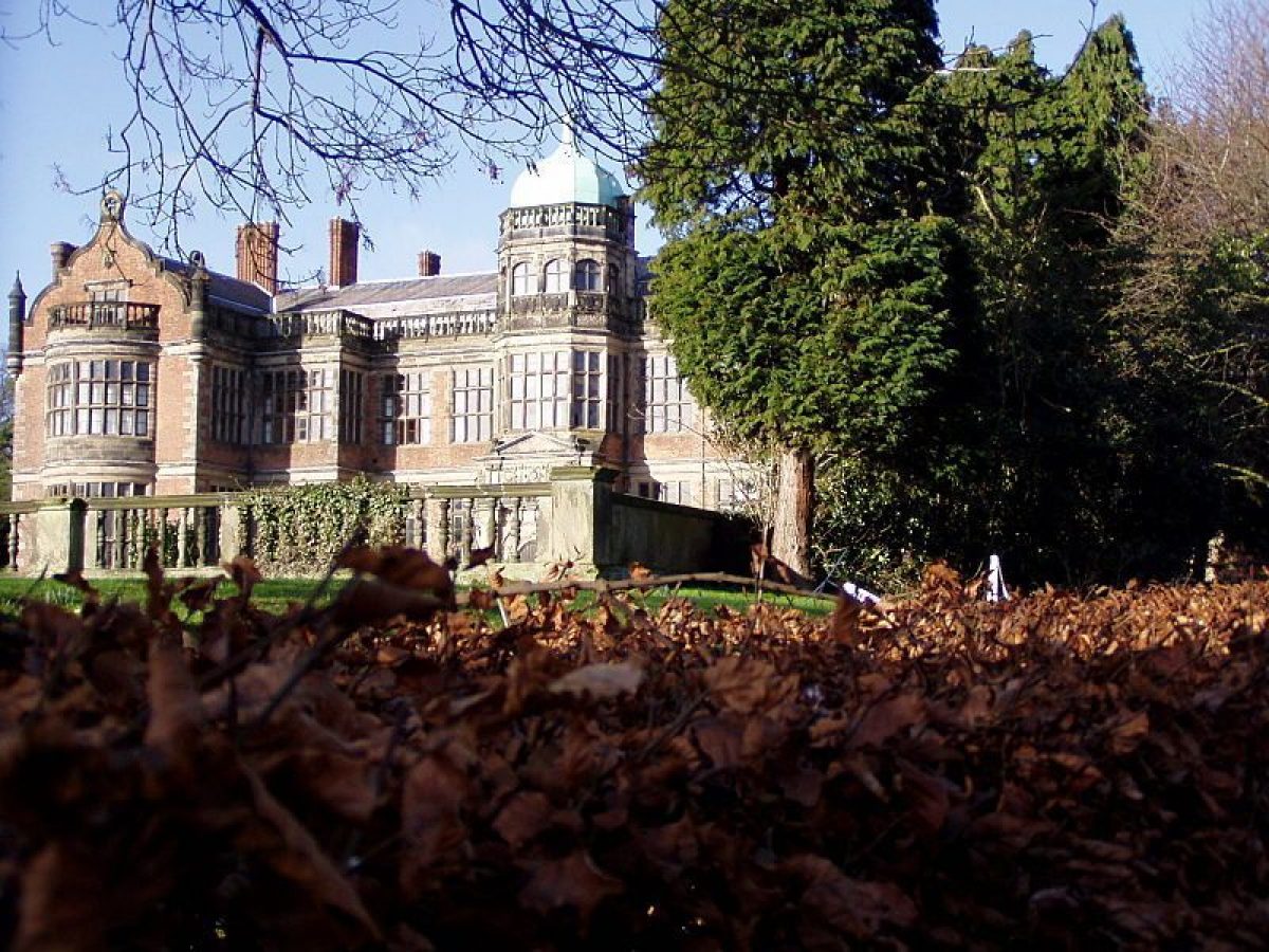 - Description: The house is built of rose brick with stone mullioned windows. It was largely rebuilt after fire in 1882.