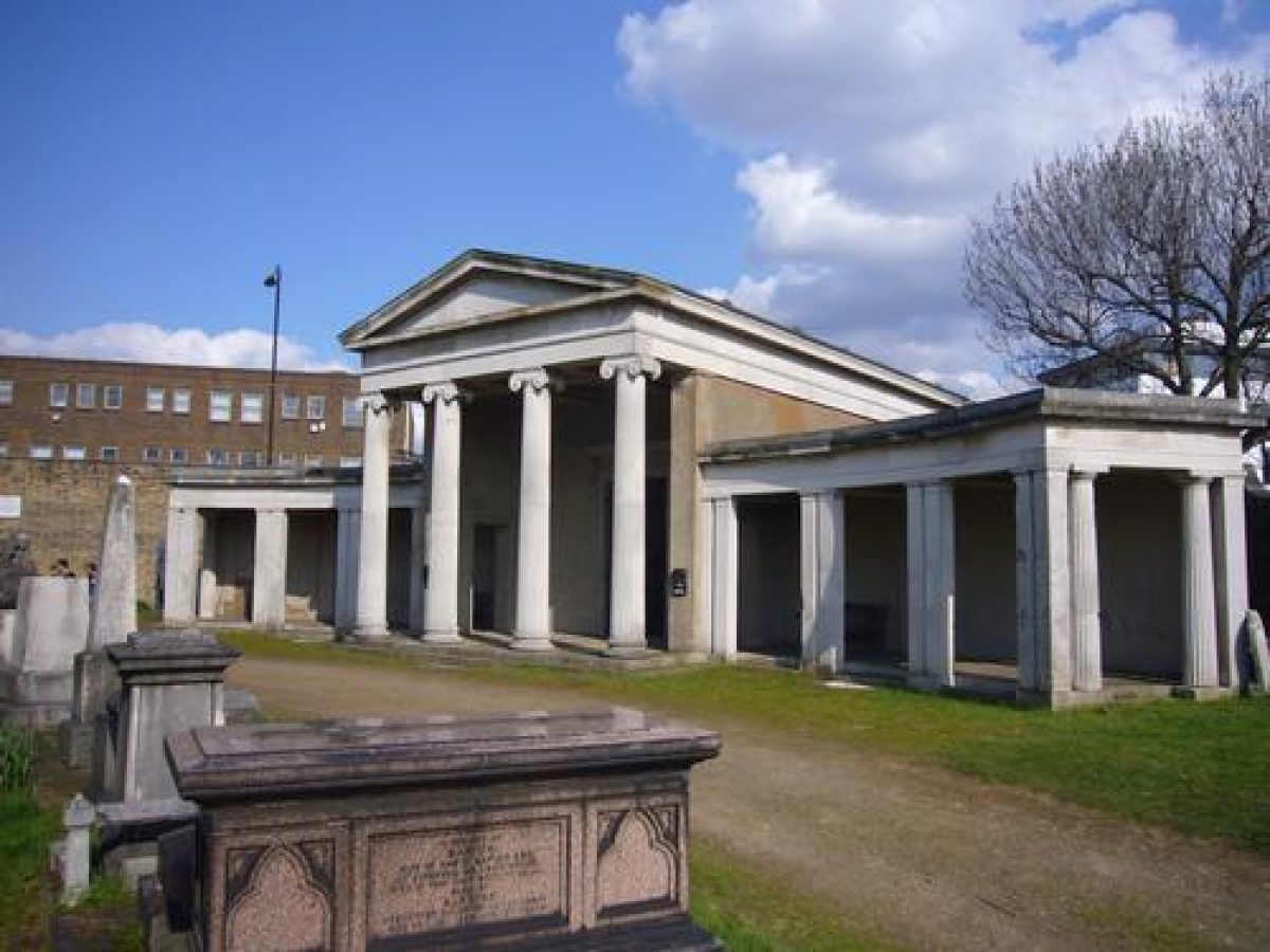 - Description: Non-conformist chapel. The giant tetrastyle pedimented Ionic portico is divided into three bays and is flanked by curved quadrant wings. This building has been restored and now houses a visitors' centre and the offices of the Friends of Kensal Green Cemetery.