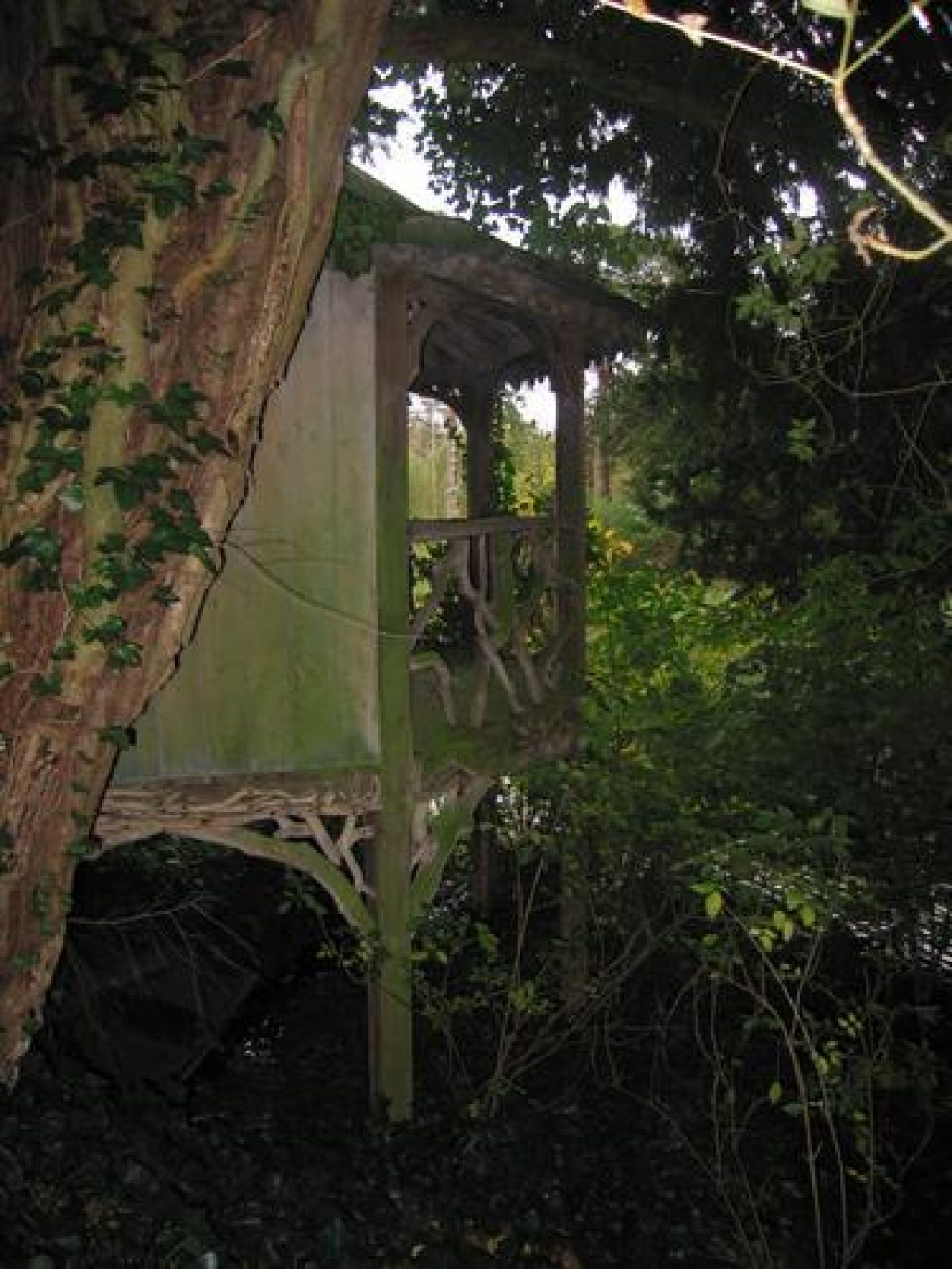 An informal path runs east from the east end of the main terrace into a small wooded pleasure ground, containing mature yews and other evergreens. The line of the ha-ha continues south-east from the end of the terrace down to the edge of the lake, separating the park to the west from the pleasure grounds to the east. A boathouse (c 1850, listed grade II) stands 75m south-east of the Hall on the north bank of the lake, at the south end of the pleasure ground. Timber-framed with a pyramidal roof, it is of octagonal plan, with two storeys, in rustic style. The path through the pleasure ground continues east towards the Dower House gardens, situated c 100m east of the Hall. The Dower House gardens were formerly the site of a C19 formal rose garden, with walks of linked circles, largely enclosed by conifers, running down to a path along the north bank of the lake (OS 1881). The area is still bounded to the north and east by stone walls which enclose the 1950s Dower House, built at the east end. It is largely laid to lawn with a swimming pool.