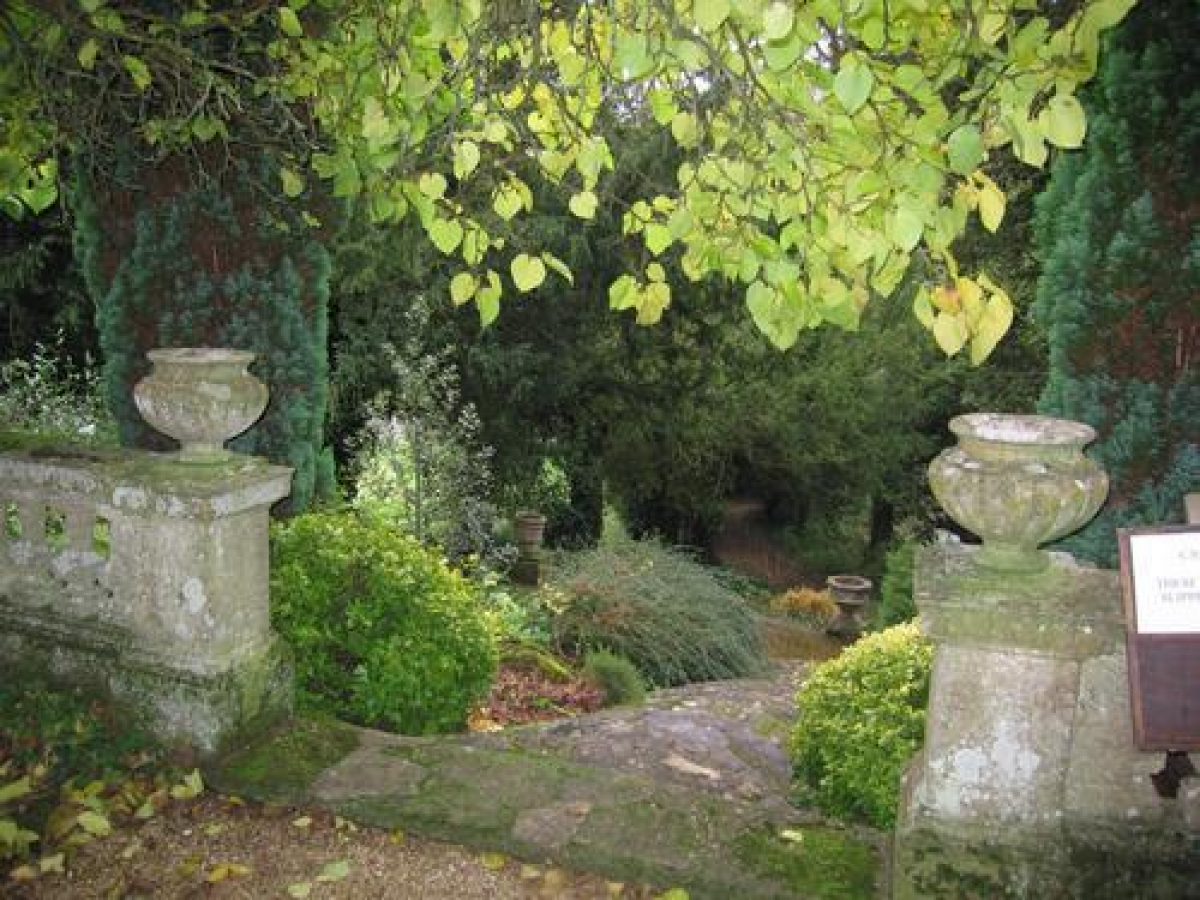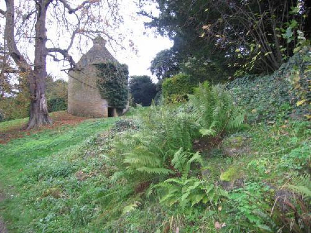 The formal gardens lie close to the Hall on the west and south (garden) fronts, consisting of terraces laid out by Barry c 1850 (listed grade II). They are entered from the loggia north of the Hall which opens onto a square lawn. The lawn lies above the terrace adjacent to the main west and south fronts, surrounded by a gravel path, with stone walls to the north and west. A lych gate lies at the east end of the north wall, giving access to the adjacent churchyard and parish church. The south boundary of the lawn is marked by a stone balustrade standing above a stone retaining wall, broken towards the west and east ends by balustraded stone steps leading down to the west arm of the main terrace which extends along the garden fronts. The terrace is laid to lawn, divided by a network of paths laid out in geometric patterns, with small flower beds in some of the panels. The terrace is linked to the garden fronts by a slightly higher gravel terrace or podium running parallel, onto which two garden doors open from the south front. The outer boundaries of the main terrace are defined by a stone ha-ha standing above the park which runs down away from the terrace. A rock garden lies west of the upper lawn, approached through a gap in the stone wall flanked by small piers. The rock garden is traversed from here via a flight of steps which divides into two part way down, rejoining towards the bottom, adjacent to the path which was the former south drive. To the north of the rock garden, standing adjacent to the churchyard at the top of the slope, is a circular stone dovecote with a pyramidal roof (C17, listed grade II), reached via a grass path running north from the upper lawn; the path continues, giving access to the walled garden.
