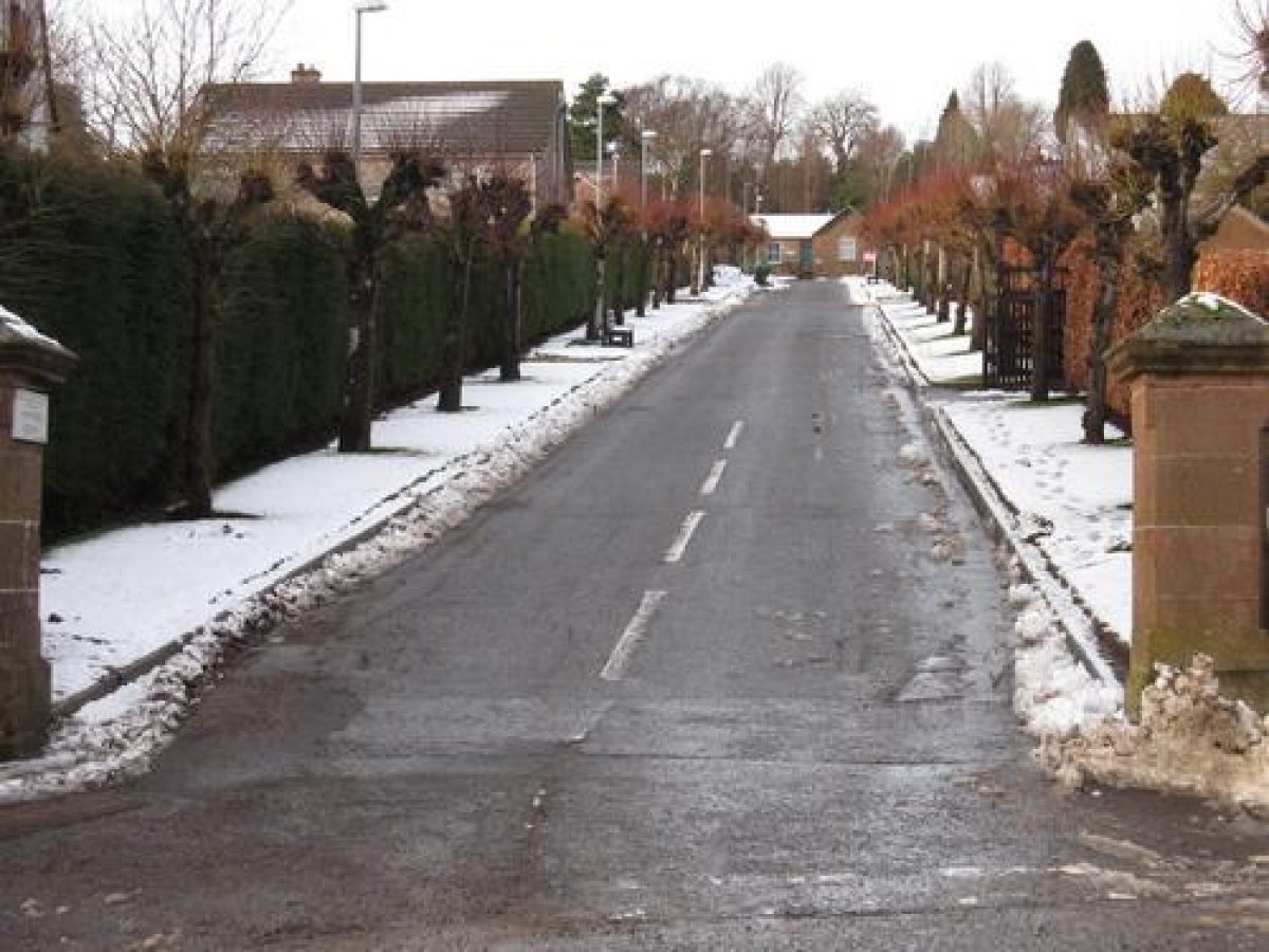 The main approach is via Brechin Road and Cemetery Road. At the road junction there are stone gate posts and Cemetery Road is lined on both sides with pollarded Lime Trees donated by Mr Smith of Aberdeen in 1901. A car park is located to the north of the cemetery and allows access to one of the avenues through the double gates. From the main drive, carriage drives enter various parts of the cemetery giving vehicular access over the entire site.