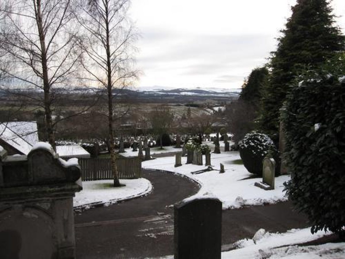 All parts of the cemetery give views to a greater or lesser extent over the Strathmore Valley and to the Sidlaw Hills, and from the north gate there is a view to the Angus Glens.