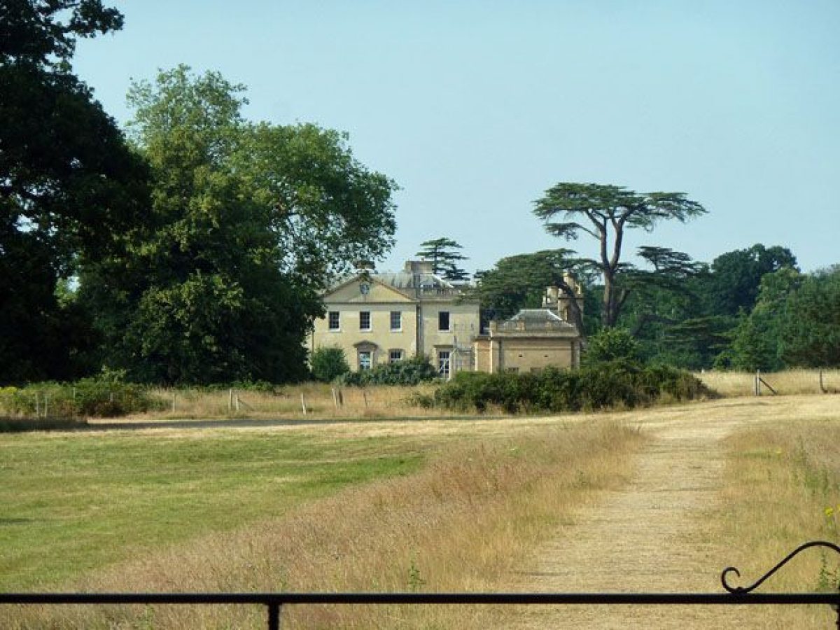 The park surrounds the house and gardens. The land falls from the high point at the north-east corner through heathy woodland with rides cut through, to the more open parkland in the rest of the site. The main feature in the park is the long, sinuous lake south and west of the house, created from a brook, possibly part of Brown's plan, and visible from the house above it to the north-east, and surrounding park. The majority of the park is pasture, or mown (south and east of the house), with some arable, together with single trees, and clumps, and narrow belts around much of the perimeter. The remains of an avenue runs from west to east along the south boundary, parallel with the remains of the deer fence. An area at the west corner was probably incorporated in 1937 when the old road was moved west to Coronation Avenue.