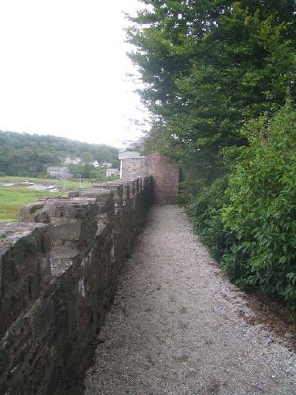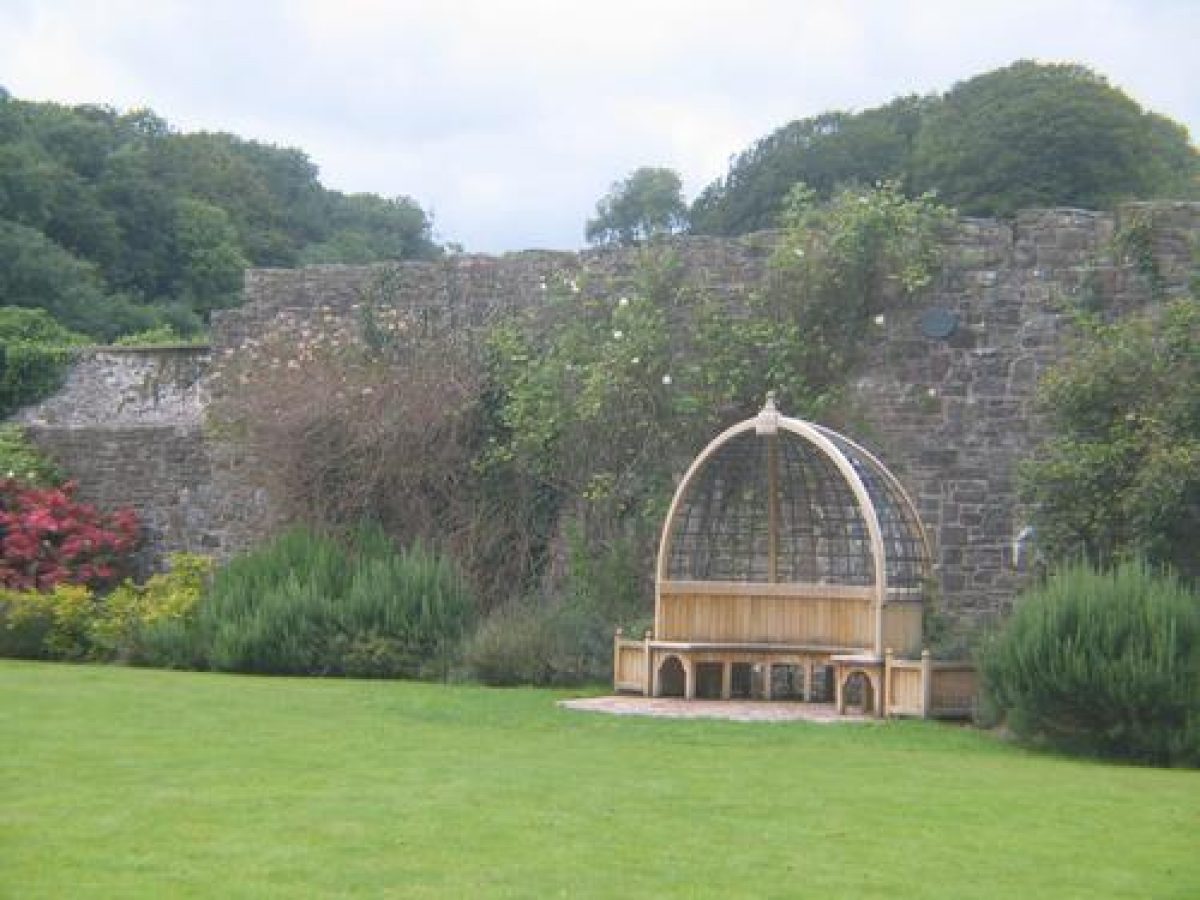 The shrubbery north of the castle is planted with evergreens, scented shrubs and honeysuckles. The path through the shrubbery leads to the gazebo on the south-west wall which overlooks the estuary. Here is a small exhibition about the writers who worked here, Richard Hughes and Dylan Thomas.