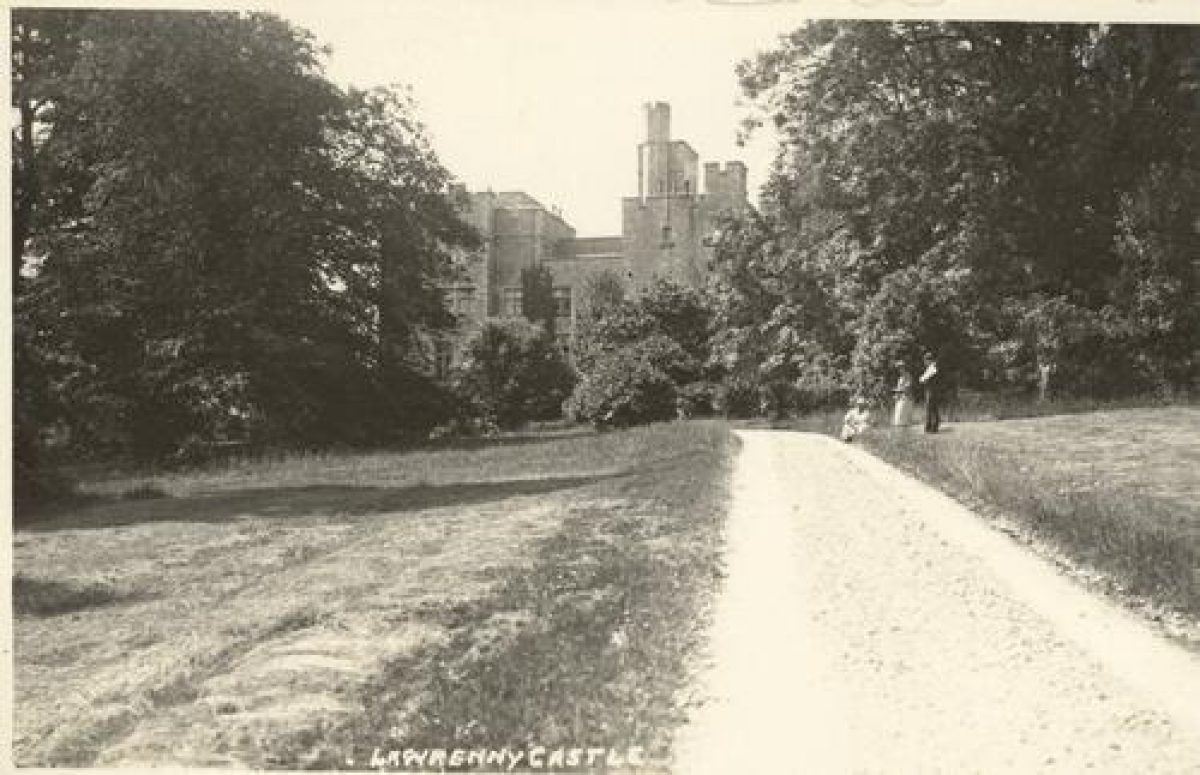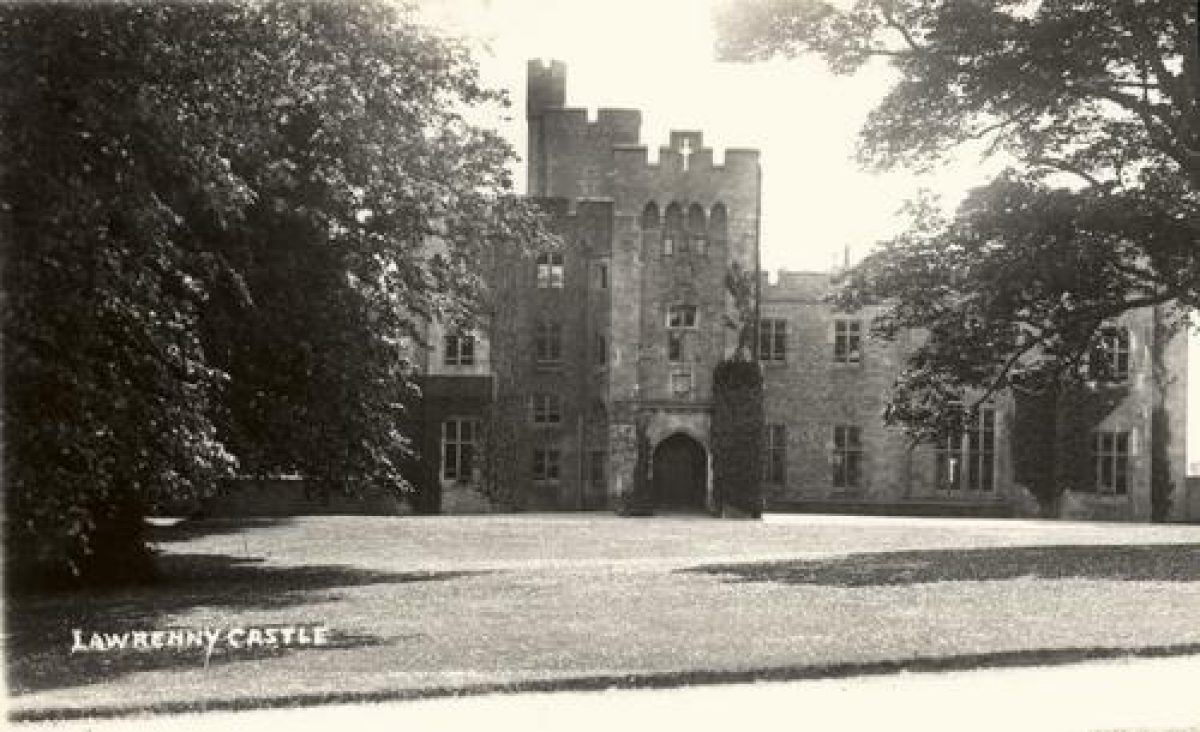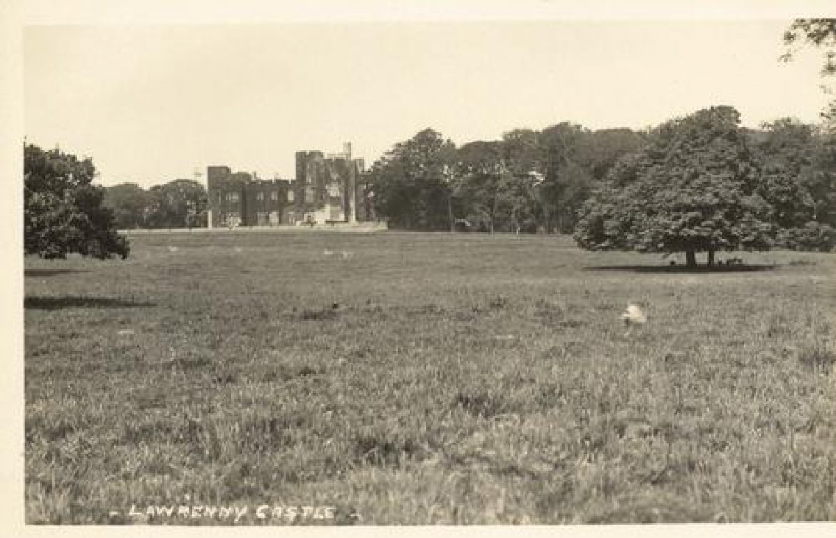 The site of Lawrenny Castle lies about 11km south-west of Haverfordwest, on a small, almost flat-topped peninsula to the immediate west of Lawrenny village. The house was demolished in 1954, and was surrounded by gardens which together are located within parkland. Gardens lie around the house, mostly to the north and north-west.