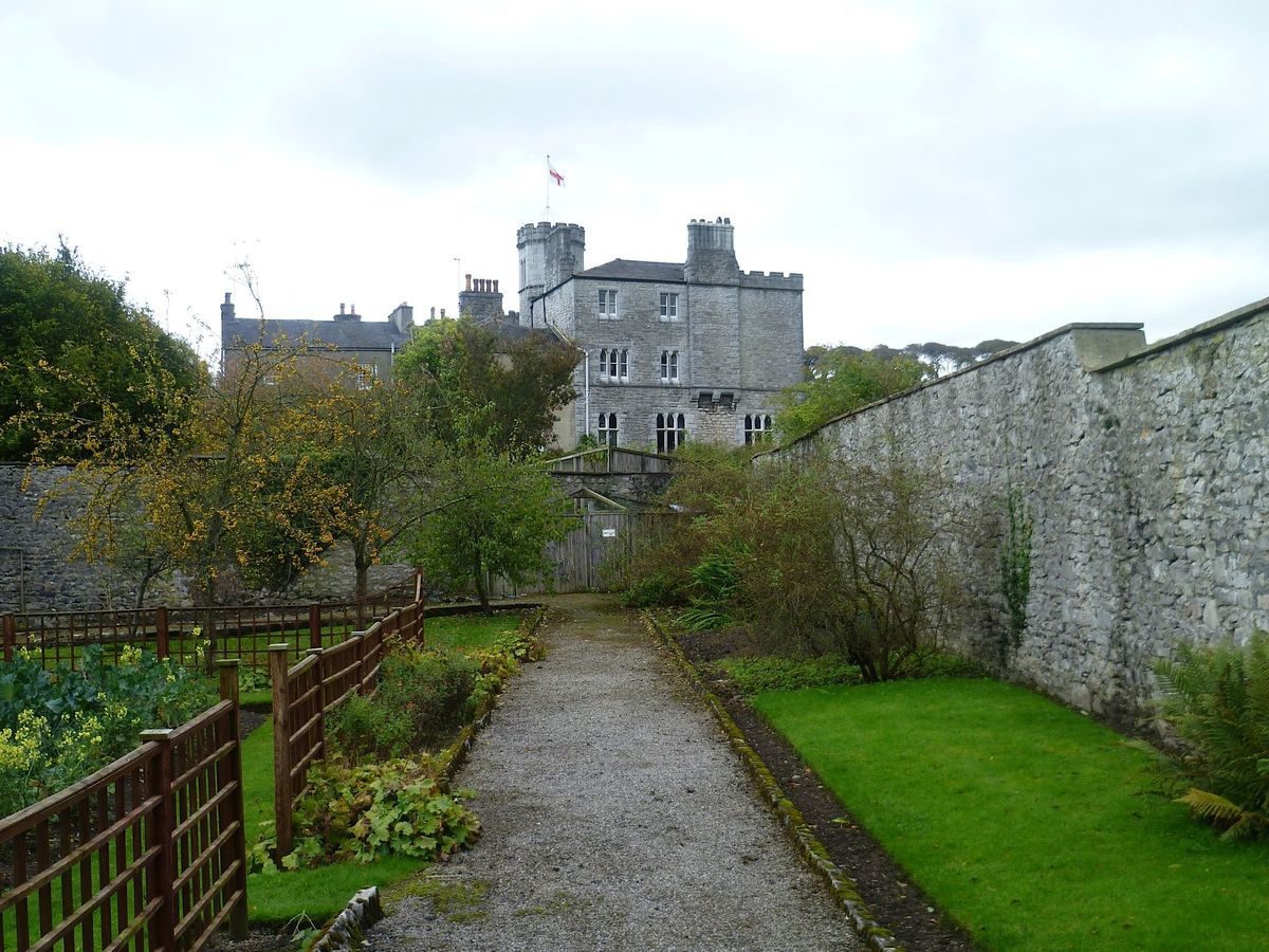 Features of Leighton Hall include formal gardens, lawns, walks, a pond and a walled, kitchen garden.