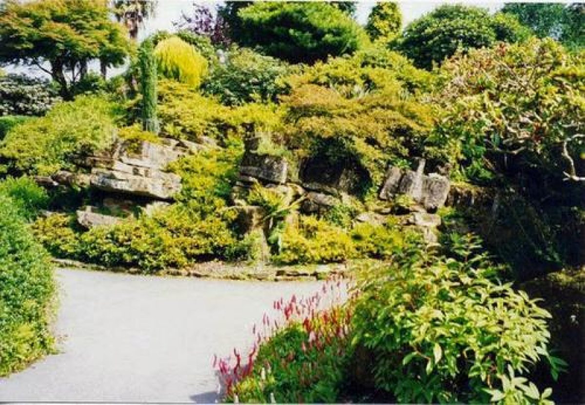 The ornamental gardens lie largely on the east- and west-facing slopes of the valley, to the north, east and south-east of the mansion and with further smaller areas to its immediate west and south-west. On the east side, the garden front of the mansion opens onto a series of steep, grassed terraces with a central flight of steps leading down to a lower lawn, enclosed on its south-east side by shrubbery and along its south side by a ha-ha (the line of which is shown on the sale plan of 1852). On the south front, the mansion opens onto level lawns with islands of shrubbery and the Camellia Walk, while on its west side, beyond the forecourt car park and enclosed by a fringe of trees and shrubs, is the Rock Garden. Constructed in c 1900 by Messrs Pulham (guidebook 1993) and roughly oval in shape, it is laid out as a series of stratified, rocky outcrops which combine natural sandstone with artificial Pulhamite rock and which are intensively planted with hummocks of azaleas, dwarf rhododendrons and dwarf conifers. Paths weave around the outcrops and set within them on the west side end of the garden is a small pool, adjacent to which is the site of a former fernery (Garden Hist 1989), now demolished. North-west of the rock garden is a large temperate greenhouse used for plant sales.