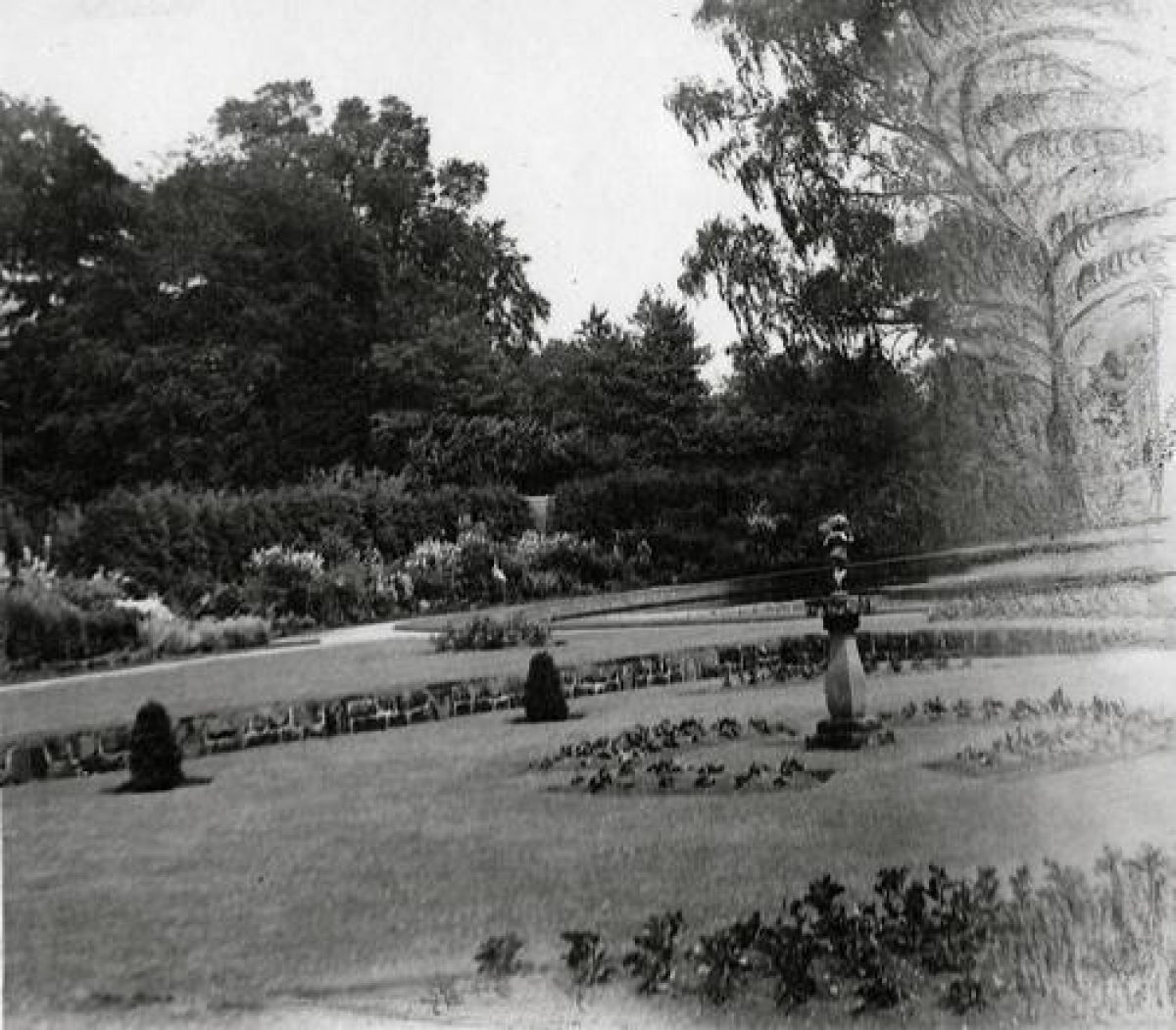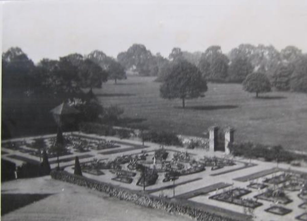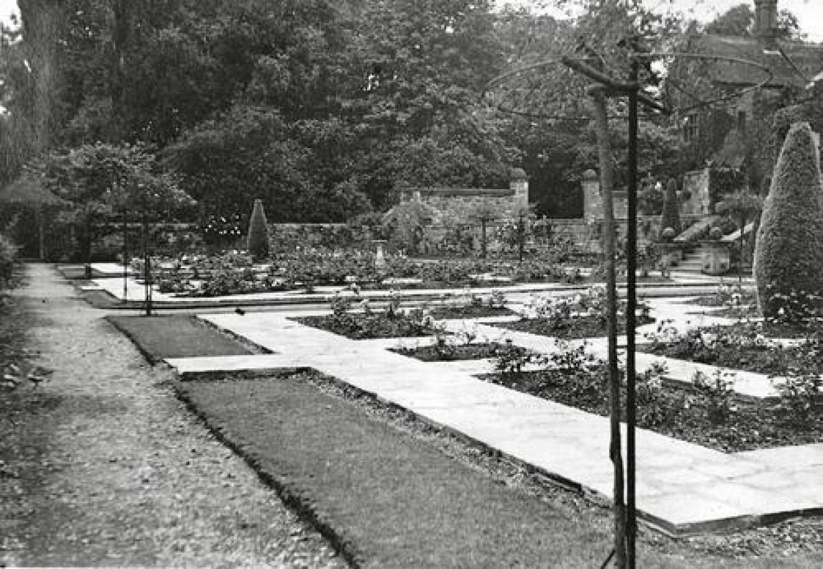 - Description: The beds in the rose gardens were once separated by box hedges. Some areas were later paved.
