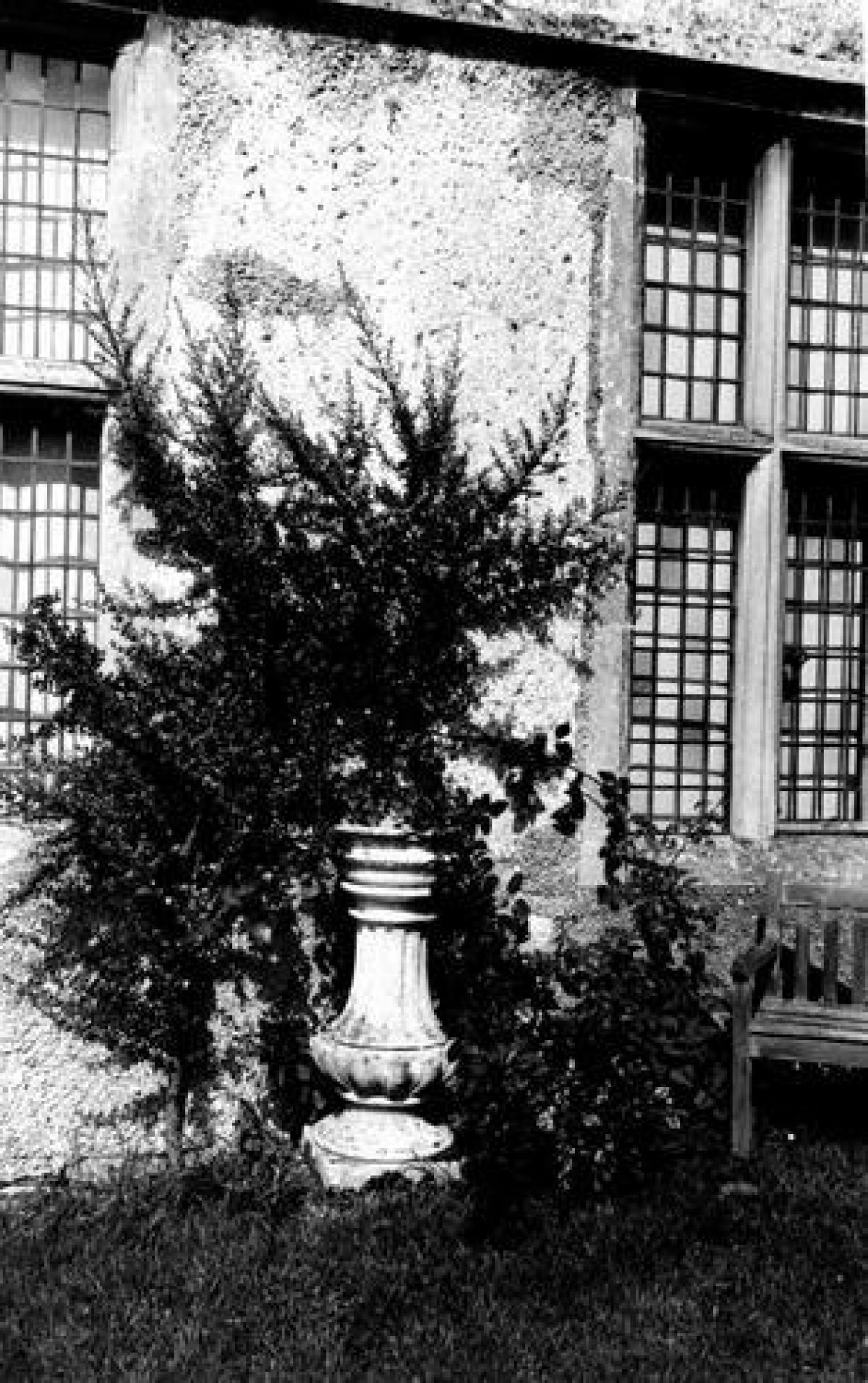 Below the terraces is the Tudor bowling green, which is entered via a stone gateway on the south side. The two flights of steps leading up to the lower terrace are overgrown.