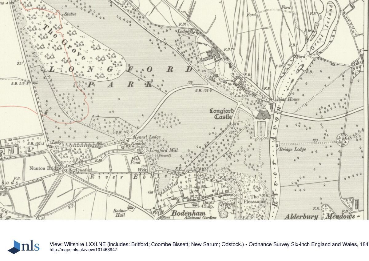 The site could also be entered via an entrance (now, 2002, blocked off) along the A338 to the south-west. From here a track leads east towards a lodge formerly knows as Kennel Lodge c 650m west-south-west of the Castle (OS 1886), now (2002) a private dwelling and much altered. Two further entrances lie along the north boundary of the site. One lies in the north-west corner c 1.3km north-west of the Castle, flanked by Britford Lodge (OS 1886), now a much altered private dwelling. The other one lies north of the kitchen garden, c 500m north-west of the Castle, also flanked by a lodge (OS 1886), now known as Kennel Lodge (2002), which has since been extended and is also in use as a private dwelling.