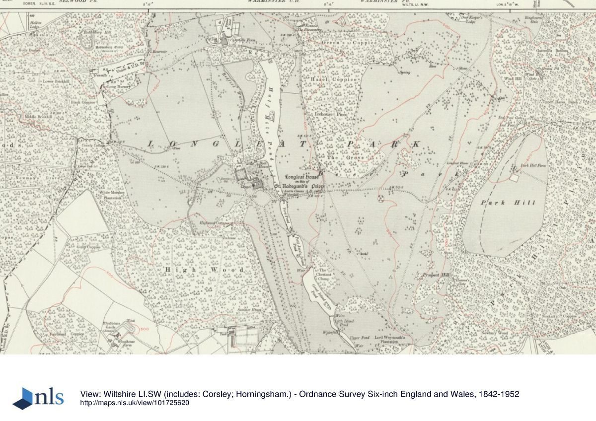 This entry is a summary. Because of the complexity of this site, the standard Register entry format would convey neither an adequate description nor a satisfactory account of the development of the landscape. The user is advised to consult the references given below for more detailed accounts. Many Listed Buildings exist within the site, not all of which have been here referred to. Descriptions of these are to be found in the List of Buildings of Special Architectural or Historic Interest produced by the Department of Culture, Media and Sport.SUMMARY DESCRIPTION Longleat lies in a rural location on the western border of Wiltshire, c 8km south-west of Warminster. The park covers an area of c 505ha bounded to the north by country lanes and farmland, to the south by Horningsham estate village, and to the east and west by extensive woodlands. Shear Water is included as a detached area within the registered site. The ground slopes generally from south to north, with the house at the level of the lakes and the park laid out on slopes rising to the surrounding woodland on higher ground. The setting is largely agricultural land with substantial areas of estate forestry.