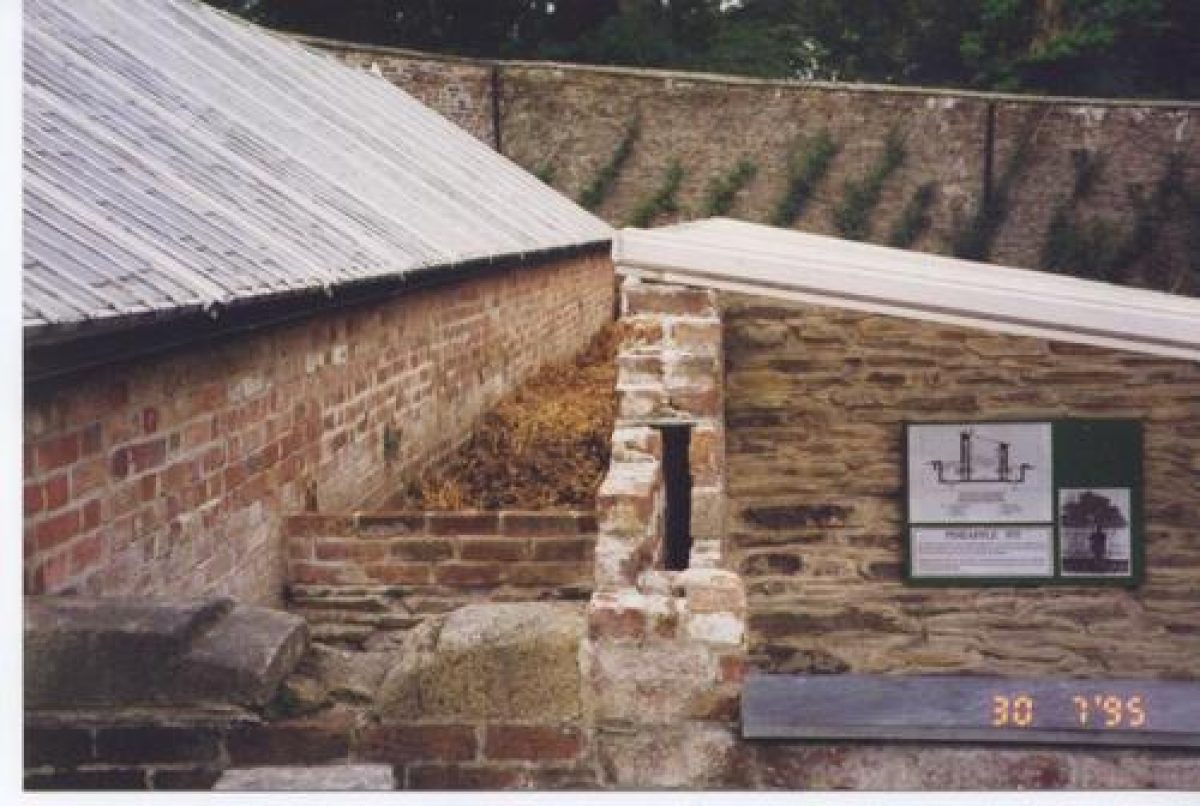 To the north of the Flower Garden a further walled garden is known as the Melon Ground. Enclosed by brick walls c 5m high, the garden is approximately segmental-shaped on plan with a curved north wall. A central walk connecting doors in the north and south walls is flanked to the east by a pineapple pit and melon house, and to the west by three ranges of cold frames. A curved wall corresponding to the north wall of the Melon Ground is shown on Thomas Gray's late C18 plan, while the 1839 Tithe map shows the garden in its present form. The Melon Ground and its glasshouses were restored in the late C20. To the north-east of the Melon Ground, an early C19 brick wall c 5m high contains three tiers of arched-topped recesses for bee skeps.