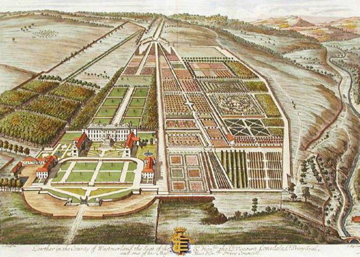 The 1685 park boundary survives in various places in the form of wall footings. At the southern tip of the park there is an area called Rowlandfield Plantation which is walled on the south and north-east side. This is shown on the 1685 map and is mentioned by the second Sir John Lowther in a memoir of 1640 (quoted in Capsticks 1995) in which he states that his father walled Rowlandfield as well as repairing the walls around areas described as the Old and New Parks. Lancelot Brown (1716-83) visited Lowther on two occasions, in 1763 and 1771 and produced plans similar to those for Croome Court in Worcestershire (qv), which were not executed.