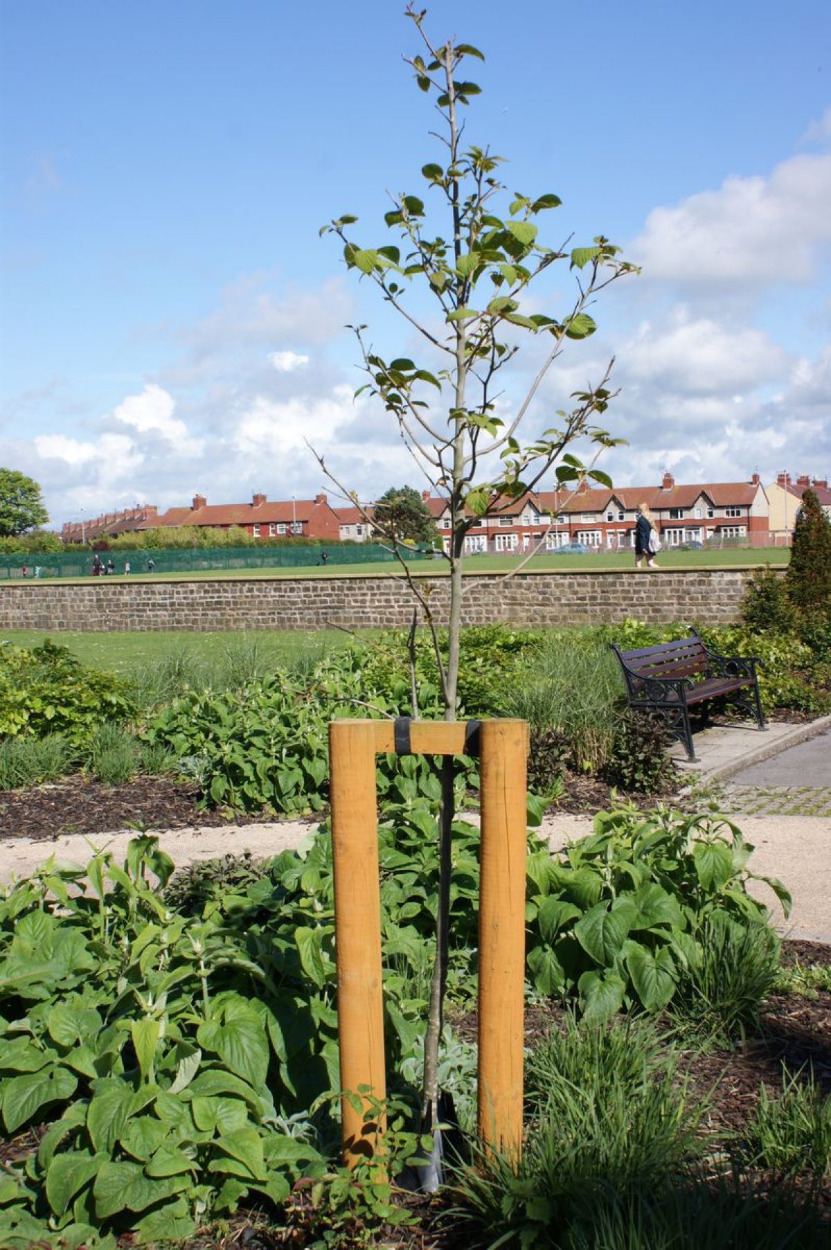 - Description: To the south-west of the war memorial there is a triangular sunken rose garden.