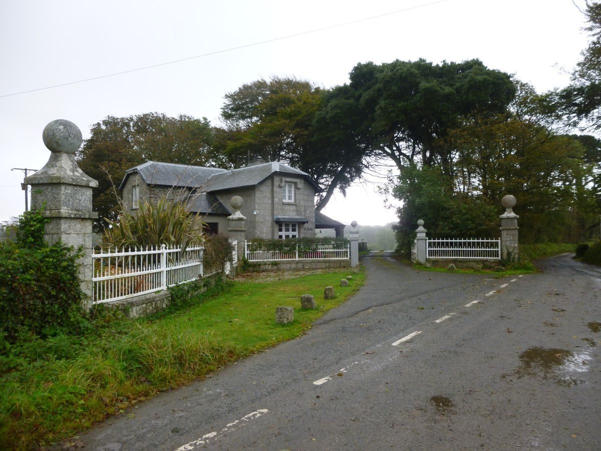 Menabilly is approached from the minor road which forms the western boundary of the site at a point c 400m south of Menabilly chapel. The entrance comprises a pair of square-section granite piers surmounted by ball finials which support an early C19 metal gate. The gate piers are flanked by low granite quadrant walls which support white-painted railings (replaced late C20), which in turn terminate in a further pair of square-section piers. Within the site and to the east of the entrance stands West Lodge (listed grade II), a picturesque two-storey structure built in granite ashlar with a single-storey pentagonal verandah to the south affording views across the park. West Lodge is probably of C18 origin but was rebuilt in its present form in the early C19 for William Rashleigh I.
