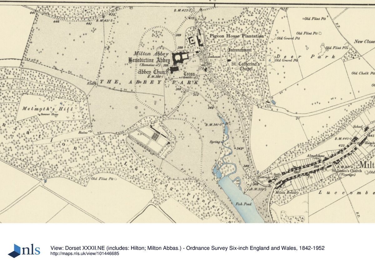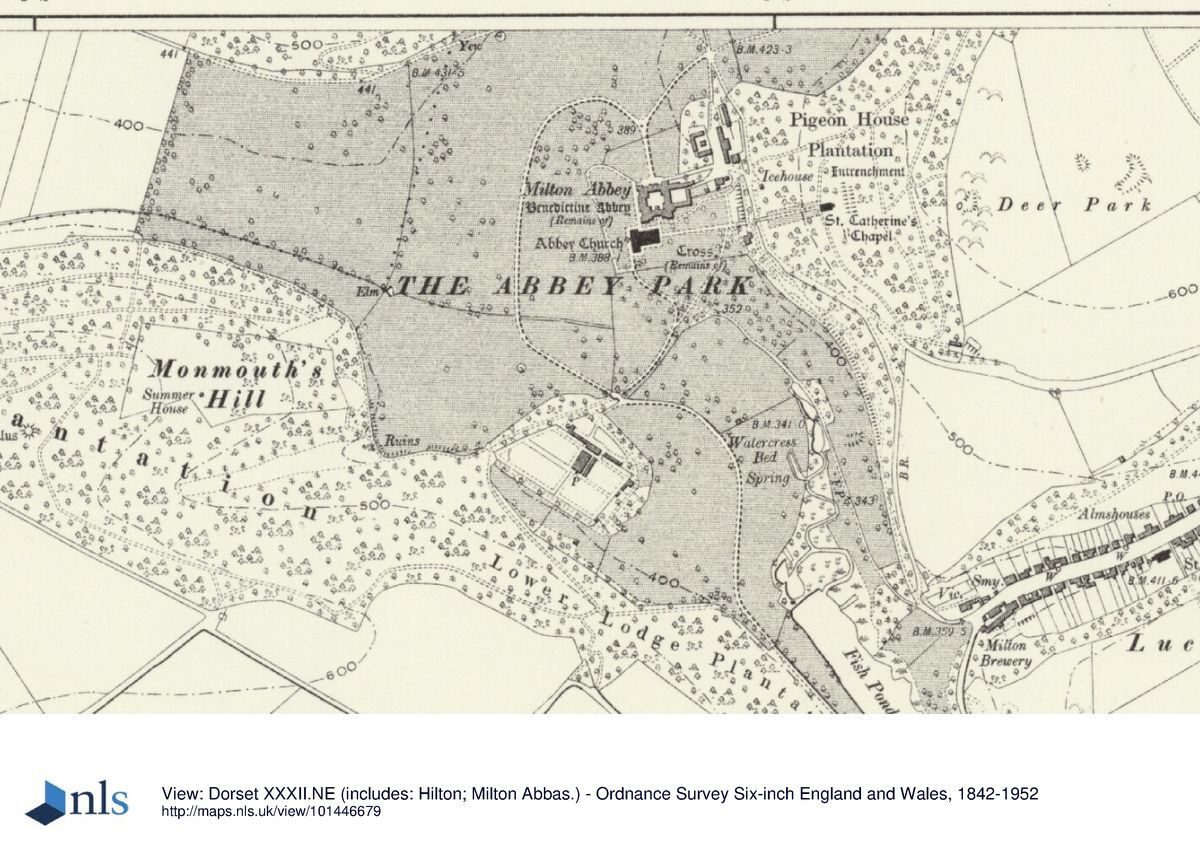 Milton Abbey is an 18th-century landscape park, which covered 300 hectares at its most extensive. The estate was divided in 1933, leaving a central area of landscape park around Milton Abbey of about 35 hectares.