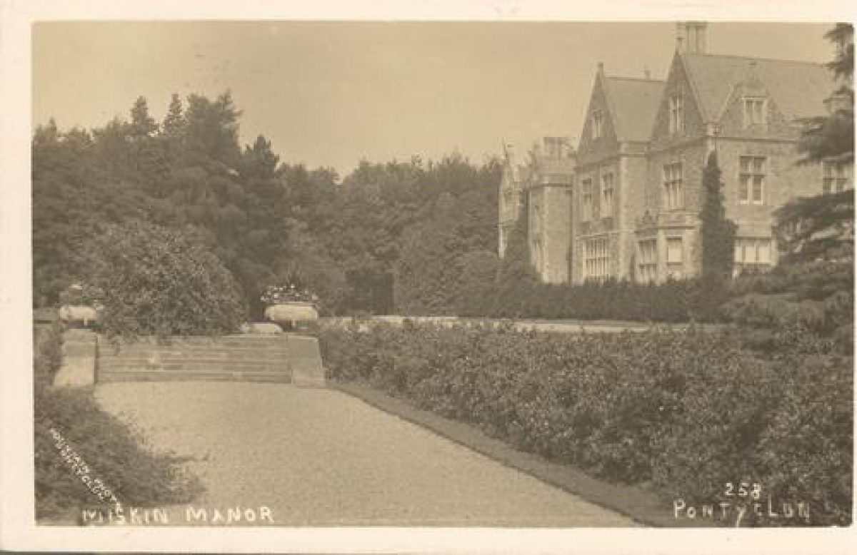 Miskin Manor is a landscape park, Victorian pleasure grounds and well-preserved Edwardian terraced garden. Features include yew topiary and 'king's beasts', in Tudor style to complement the house, and some fine specimen trees. There is an unusually ornamental walled kitchen garden with the remains of a canal, a pool and flanking yew hedges.