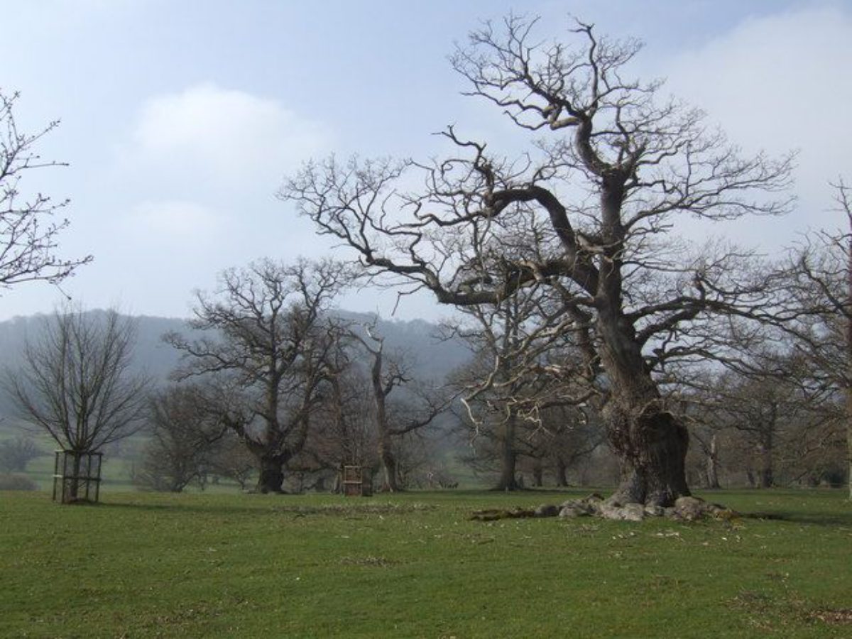 About 15ha around the house and including the Home Farm and kitchen garden are enclosed within a ha-ha, the line of which is continued to the north of the house by a chain of three small fishponds. That area, effectively forming an inner park, extends principally to the west and north of the house. West of the house the ground is largely open, giving a view to the deer park. Ridge and furrow underlies the permanent grassland. The northern part of this inner park is fairly densely planted with old sweet chestnuts and oaks. These may be among the 300,000 oaks reportedly planted on the estate between the mid 1790s and 1836 by Mr J Webster, the gardener and forester.