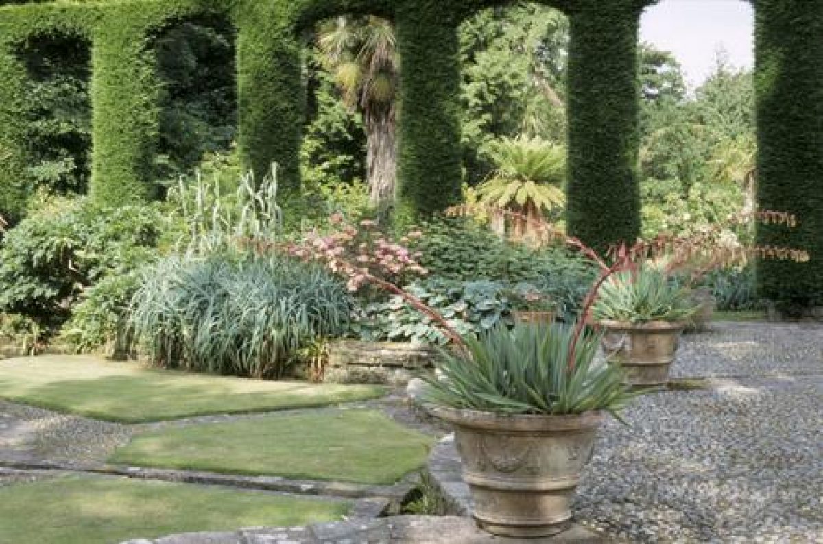 Nearby the Spanish Garden was formed with a Lutyens-like layout flanked by a topiary arcade. The Sunk Garden, a rectangular compartment, included a pergola. A hedge was grown to include historical allusions such as a coracle and a huntsman. The Shamrock Garden included national and political symbols such as the Red Hand of Ulster, associated in legend with the Ards Peninsula, and a topiary harp.