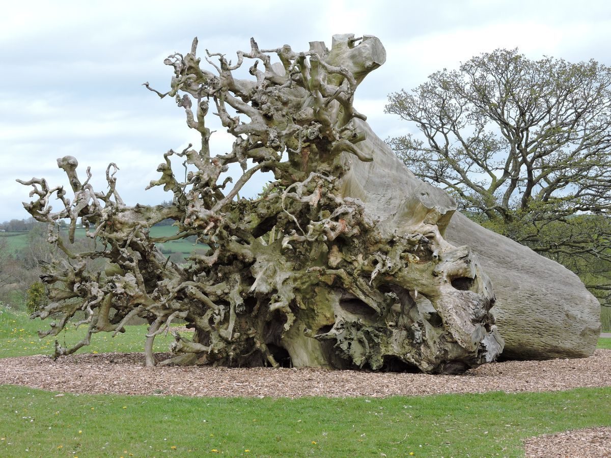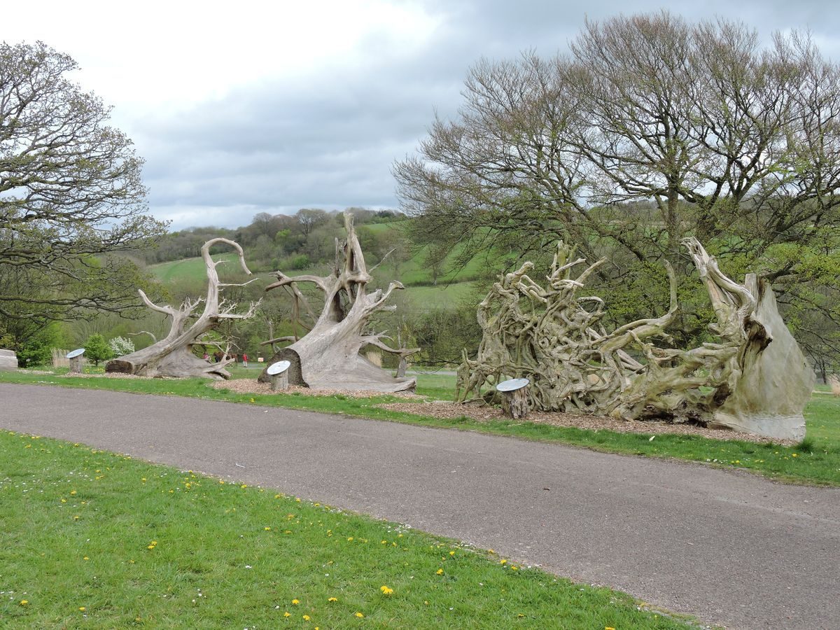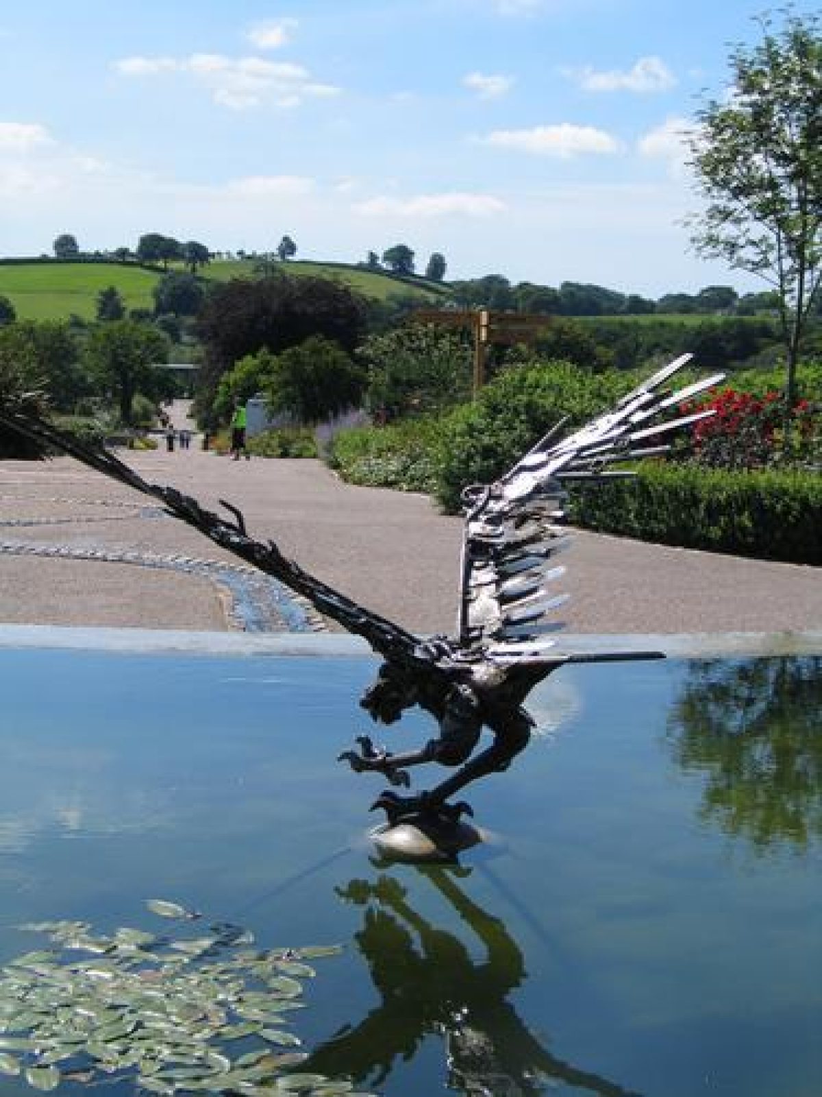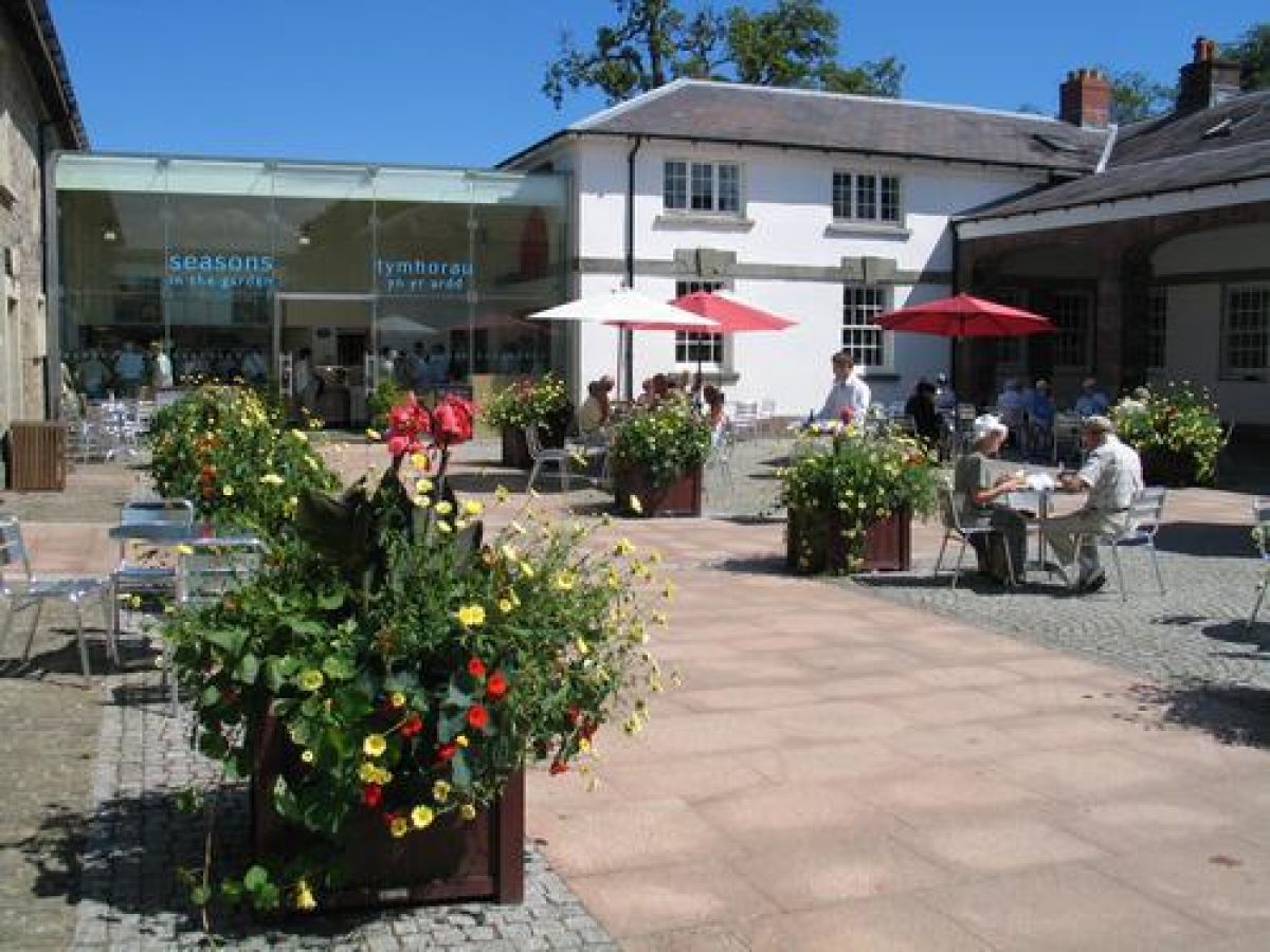 Most of the central area was developed as the National Botanic Garden for Wales in 2000, incorporating surviving older structures. Most of the lakes were restored. New fountains and sculptures are by contemporary artists. A broad walk flanked by rock specimens representing the full chronology of geological time in Wales leads up towards the old stables and the Great Glasshouse by Norman Foster and Partners which covers a large-scale arid landscape and rock garden by Kathryn Gustaffson. Most recently, a tropical House by John Belle, devoted mainly to monocotyledononous plants, has been built at one side of the walled garden. The new hard landscaping within the walled garden utilises four different styles and materials of pathway in the four quarters. Three quarters are devoted to plantings representing the evolutionary affinities of plants, and the fourth is a series of allotments gardened by local schools.