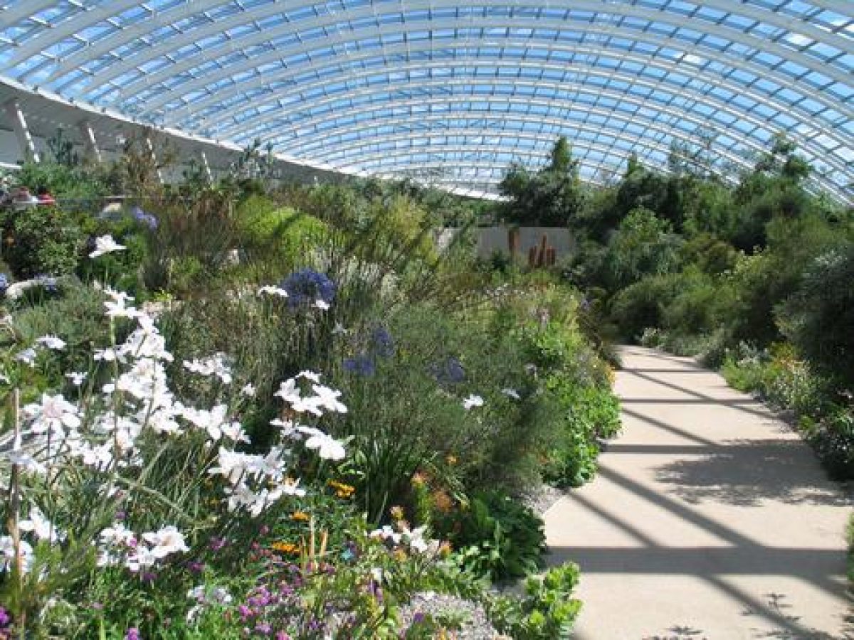 - Description: The Great Glasshouse is by Norman Foster Associates. It is a circular structure rather resembling an insect eye. It is the largest single span glass building in the world.