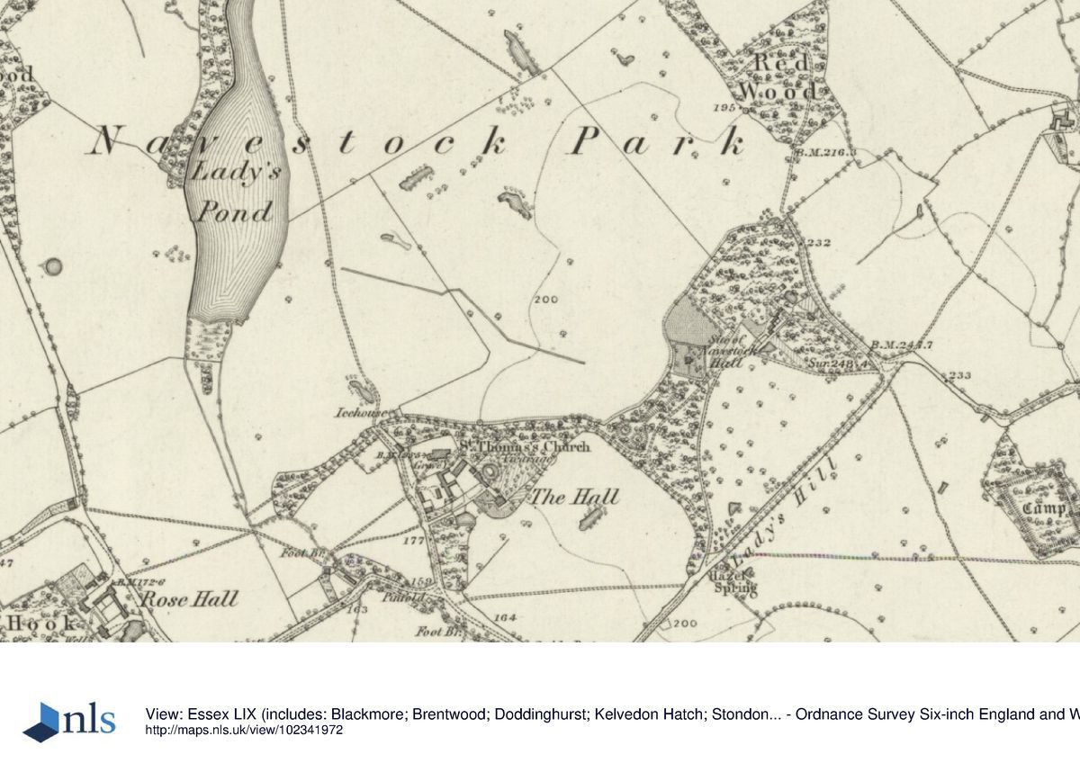 The improvements to the park and pleasure grounds of Navestock Hall were one of Lancelot Brown's larger projects. Though his total bill was only a quarter of that for Blenheim Palace, allowance must be made for the Essex park covering a very much smaller area than the one in Oxfordshire. Brown's work at Navestock was spread over nearly 20 years and, though the park was abandoned a few decades after its completion, there is plenty of field evidence and an invaluable series of maps which show the earlier landscape, and how Brown adapted it. This study, based on maps, archives and printed sources, as well as a detailed field visit by the author in 2002, will look at the early-17th-century tenanted manor farm with its large demesne fields and woodland, and its adaptation in the early-18th century to provide a small park and pleasure grounds for the newly-built mansion of the first earl Waldegrave. It will then examine the alterations and enlargements made by Brown for the third earl, and the subsequent fate of the park and pleasure grounds after the demolition of the mansion in 1811.