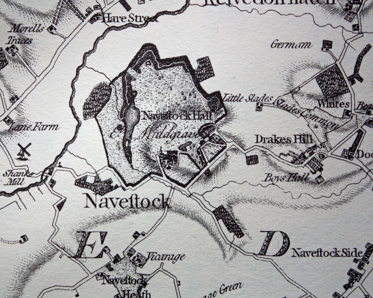 The grand double planted avenue of the first park layout, running from the rear of the mansion to the Stanford Rivers road was completely removed. It disappeared some time between 1726 (when it would have been less than 10 years old) and 1772-3 when Chapman & Andre surveyed for their map (printed in 1777). It can be stated with certainty that the avenue had gone within 7 or 8 years of Brown commencing his work at Navestock, but there is no definite evidence that he initiated its destruction.