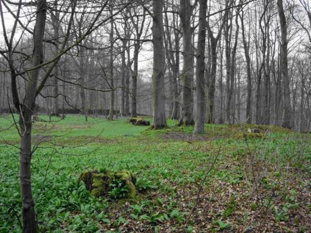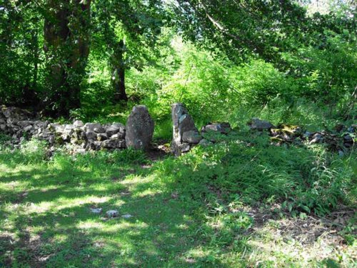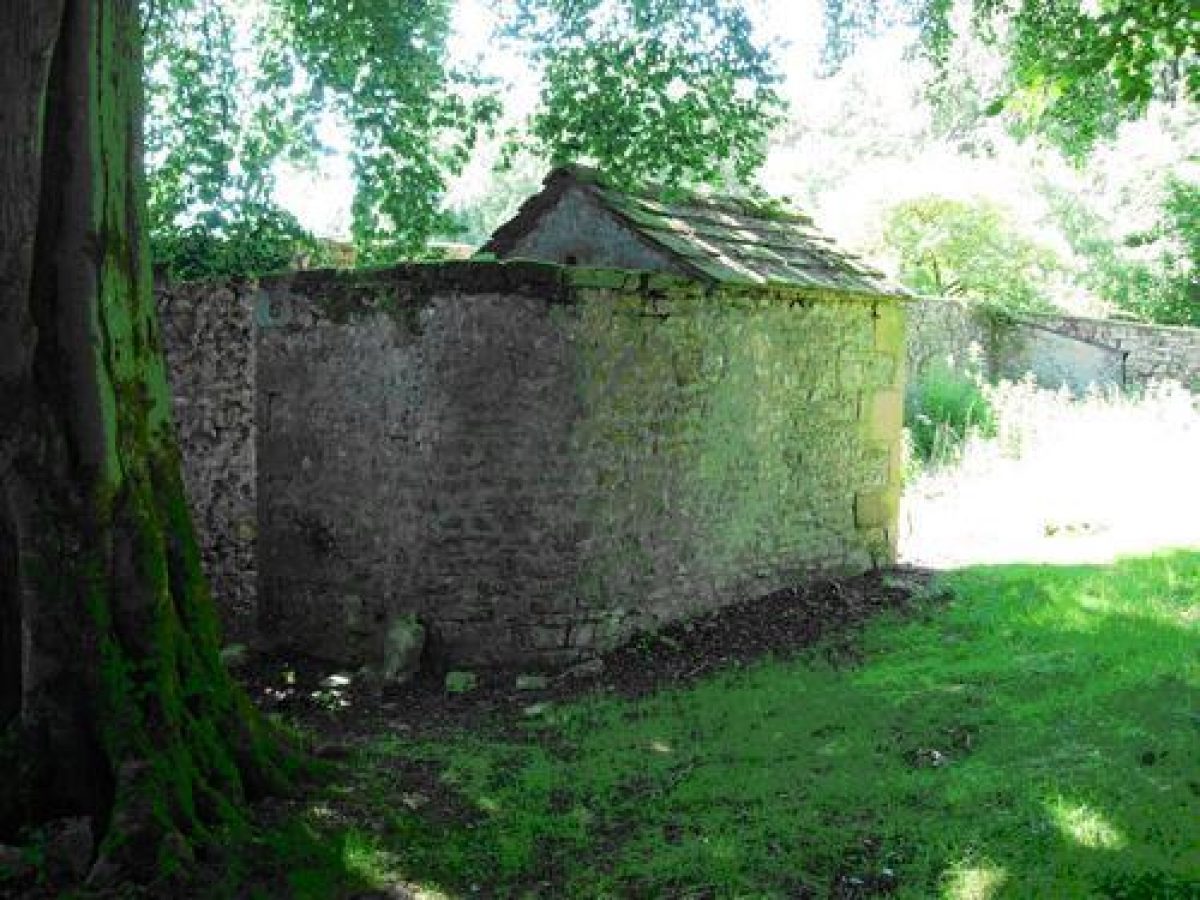 - Description: There is a well-built free-standing stone structure, possibly a privy.