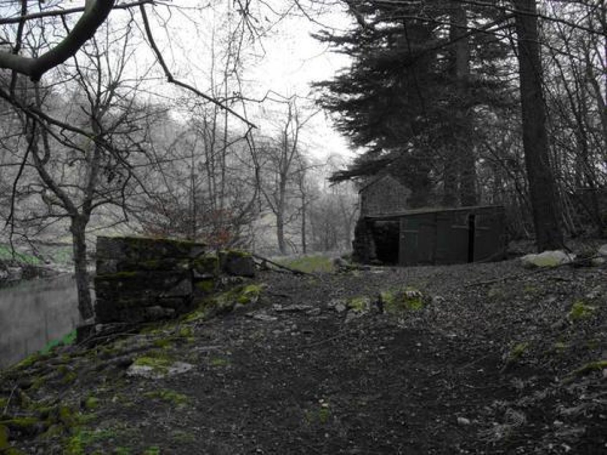 Outside the eastern extremity of the D-shaped walled garden a flagged path leads from the drive beside a small circular pond to a curious feature of Netherside. This is semi-sunken track which skirts the semi-circular wall of the kitchen garden. This path is enclosed by the kitchen garden wall on one side and a second wall built to screen it from the lawns in front of the house, possibly to prevent garden staff from being seen by members of the family and visitors. The track passes a well-built free-standing stone structure, possibly a privy, before continuing past two other garden buildings, one a bothy, attached to the wall of the kitchen garden, eventually reaching the gardener's cottage and the western extremity of the walled garden.