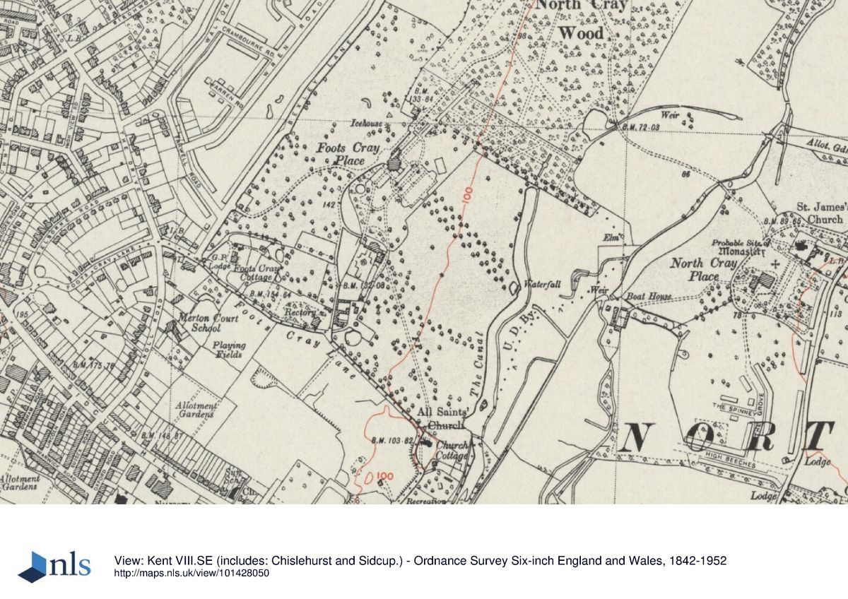 - Description: The former walled kitchen garden (c75m x60m) lies immediately to the east of the St James’s church and north of the former gardens of North Cray Place and is now occupied by early and late C20 housing.