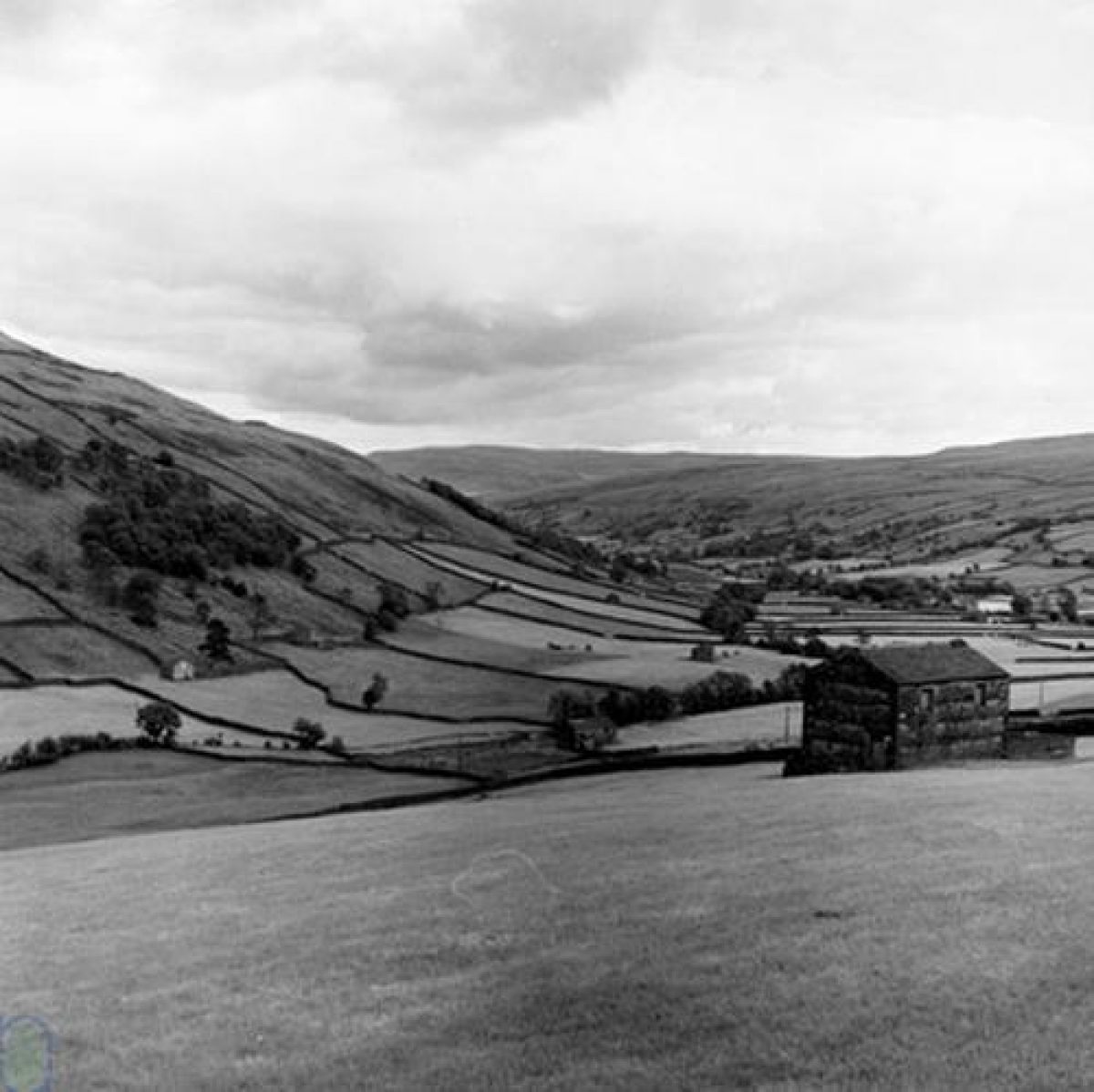 Stone dominates Swaledale. Since the land was first farmed pieces of stone have had to be cleared from the fields, even today, in the twenty-first century meadows have to be walked and pieces of stone together with lamb's tails removed before haymaking can begin. The distinctive dove-grey limestone is used for walls that from a distance can look like a continuation of the natural rock as they criss-cross the land protecting flocks and plants from the harsh weather. As a result the pattern of barns and walls dominates the openness and simplicity of the fells on the ground and from the air.