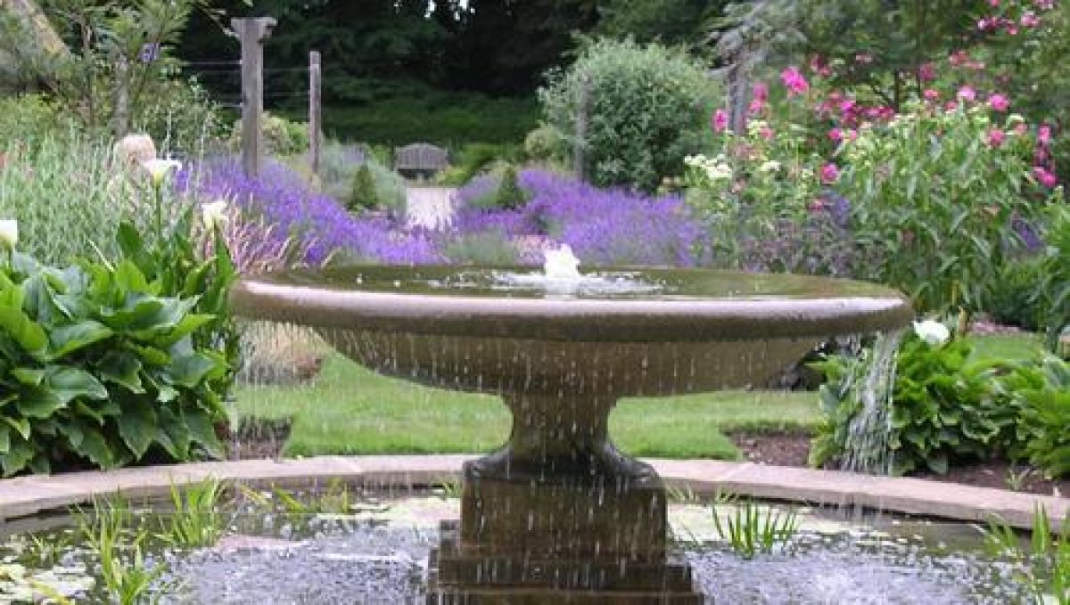 - Description: The centre piece of the Water Garden is the fountain which is set inside a pattern of two circles. The water is deliberately wide and deep so that it gives a sense of substance to the structure of the bowl which, by contrast, is very shallow. This planting was inspired by that of Penelope Hobhouse?s Garden at RHS Wisley. The inner circle is planted with Zantadeschia eithiopica `Crowborough?. The outer circle is planted with a combination of soft hazy planting including Gaura lindheimeri `Siskyou Pink? contrasting with the stronger form of Eringium `Yuccifolium? and Sedum telephium `Matrona?. The planting in this outer circle is in opposing drifts so that each drift of plant is carried on in the quadrant on the other side of the water feature. The pattern of the beds continues the symmetrical geometry of the Formal Garden.