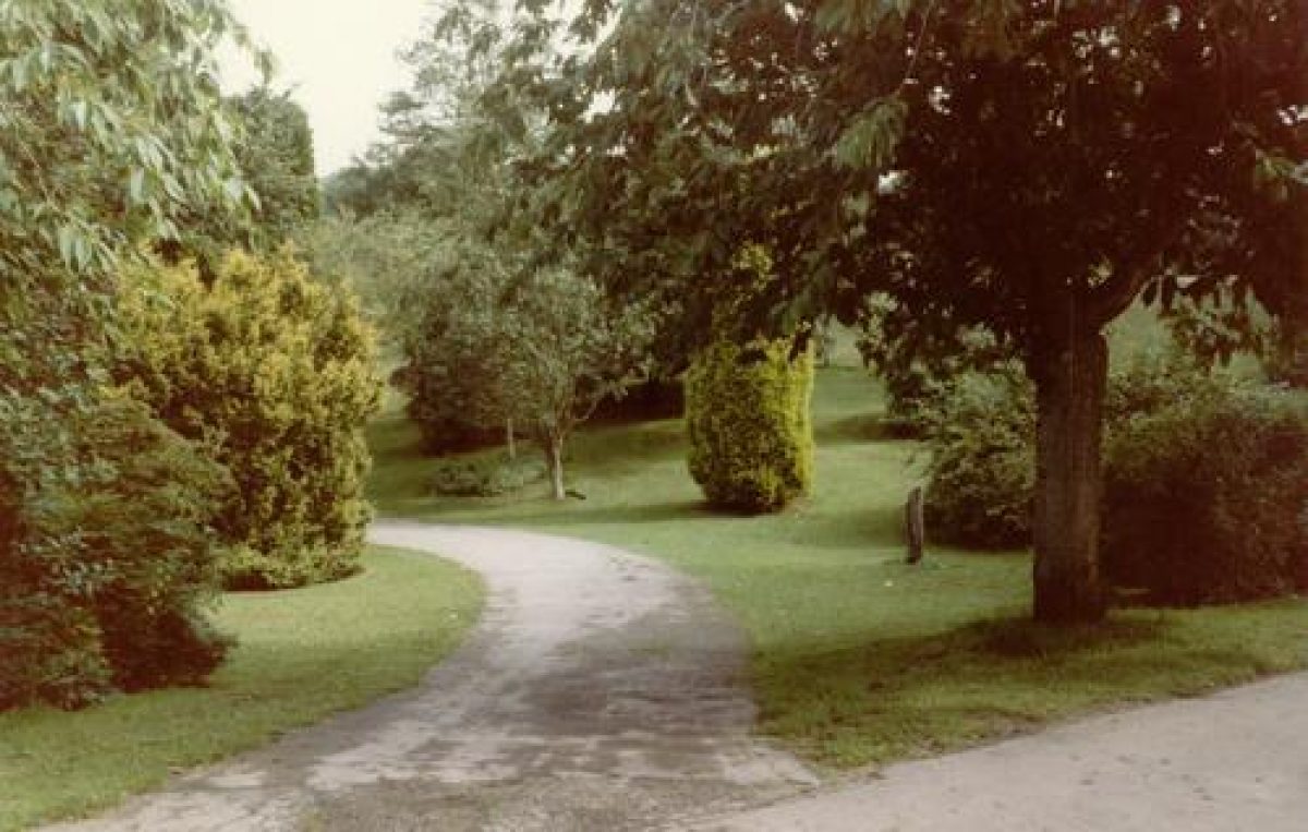 The mansion house, which was demolished in 1960, occupied a site on a prominence overlooking the river valley. This area of the valley is densely planted with laurel, rhododendron, bamboo, aucuba, holly and other shrubs. Many footpaths have been laid out on the steep slopes on the south of the river, and provided with steps where necessary. These footpaths allow the visitor many different views of the river valley.