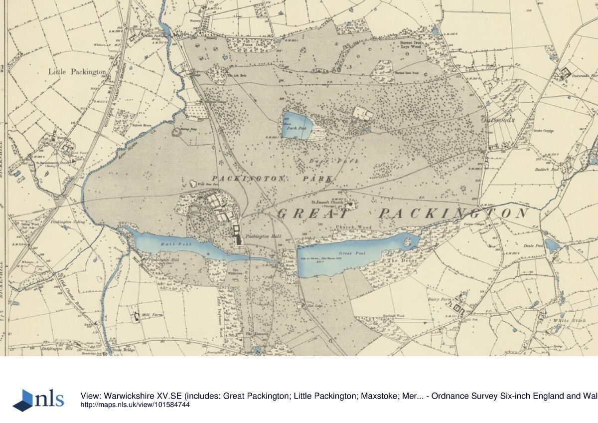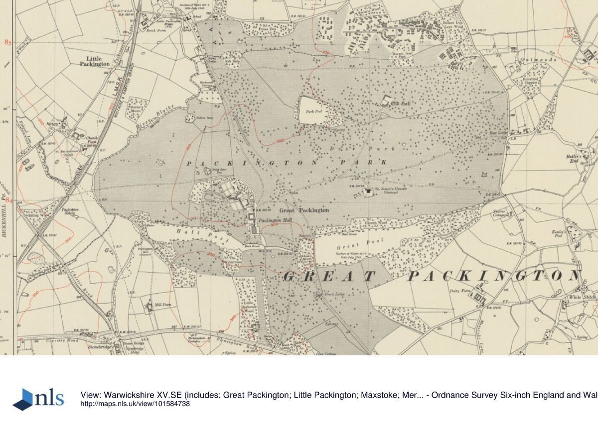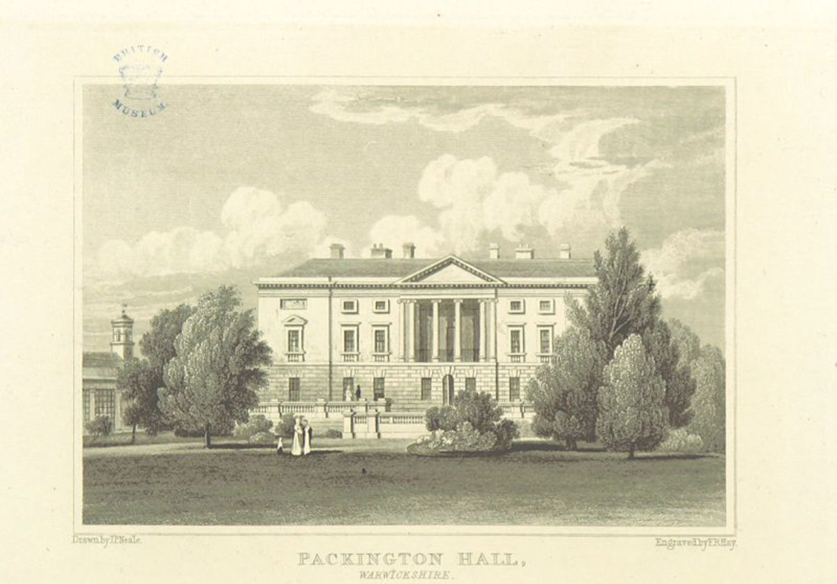 Packington Hall is one of a group of sites in Warwickshire at which Lancelot Brown advised in the mid and late C18. These include Charlecote Park (qv), Compton Verney (qv), Combe Abbey (qv), Newnham Paddox (qv), and Warwick Castle (qv).