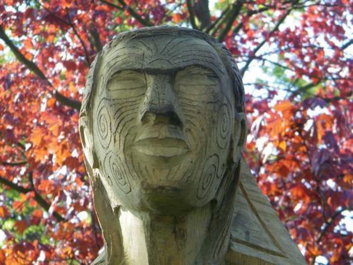 - Description: The statue of the mythological Maori warrior Kupe was designed by local chain saw sculptor Steve Iredale.