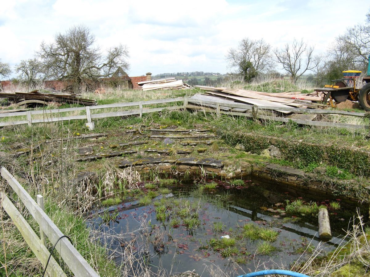 - Description: Measuring 10 metres x 6.60 metres, the lily pond formed the central feature of the formal garden that lay to the south of the Hall. There were steps at either end, leading down to water level, and York stone walls at the sides, with rock plants in the crevices. There was a dolphin fountain with water gushing from its mouth. The surrounding beds were filled with roses and seasonal bedding plants.Gertrude Jekyll commented on it in “Gardens for Small Country Houses”, describing it as “the delightful pool at Papillon Hall, where the contrast between the curves of the descending steps and the lines of the margin of the pool is altogether successful”.It now stands in a field, surrounded by farm equipment.